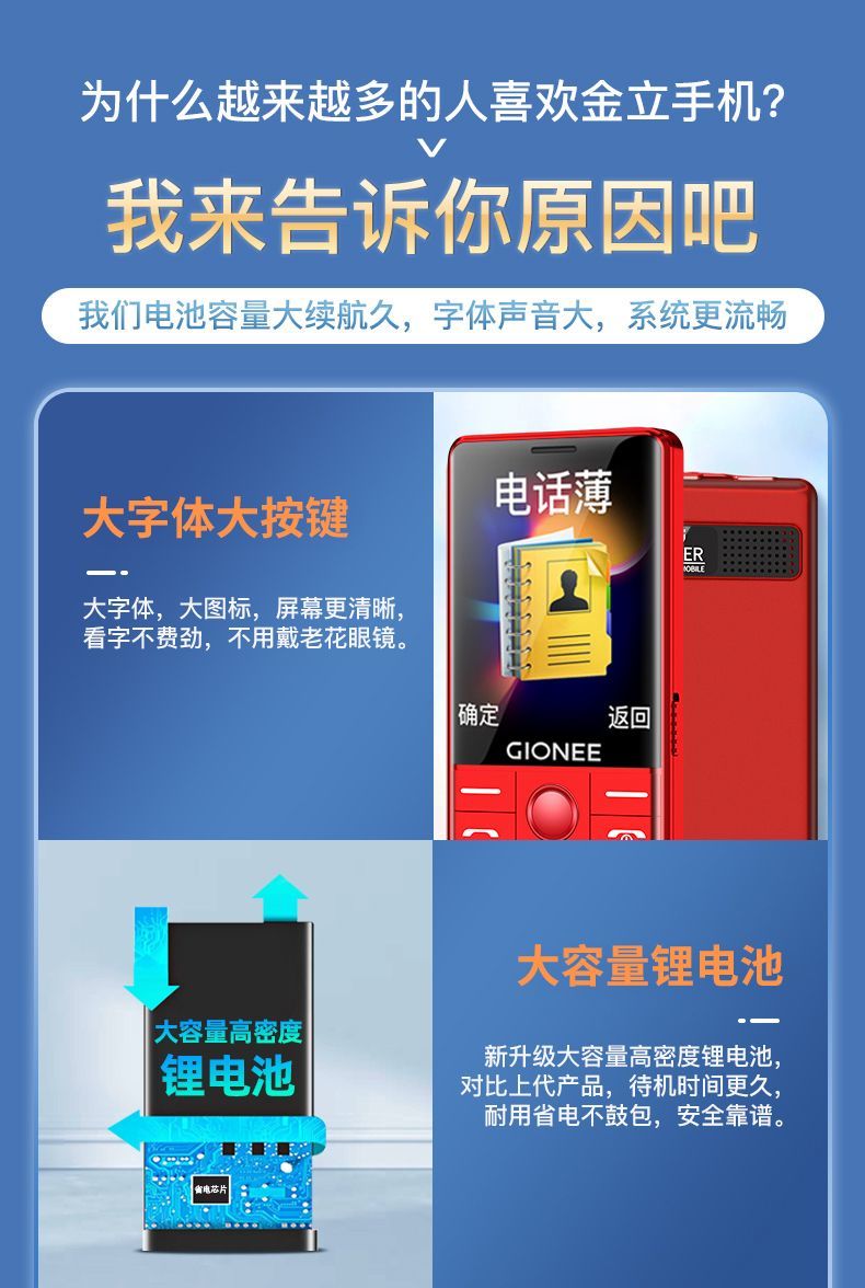 金立最新款老人手机4g全网通老年手机老人机老年机超长待机大音量