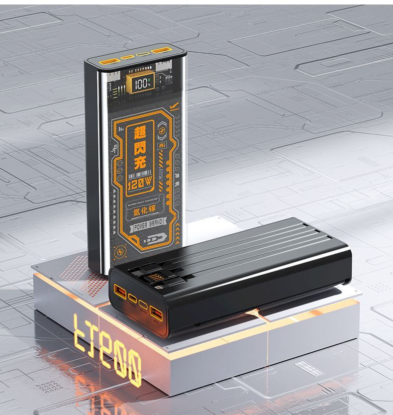 超级快充120W充电宝57000毫安自带线适用手机闪充2万移动电源耐用