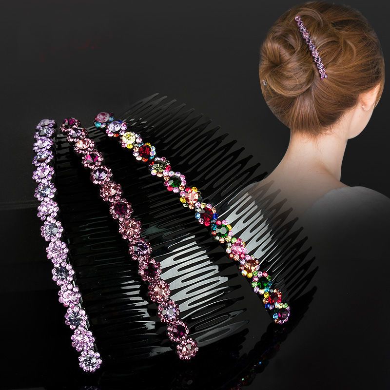 水钻发梳盘发防滑插梳碎发刘海梳韩国成人发夹女发卡顶夹梳子头饰