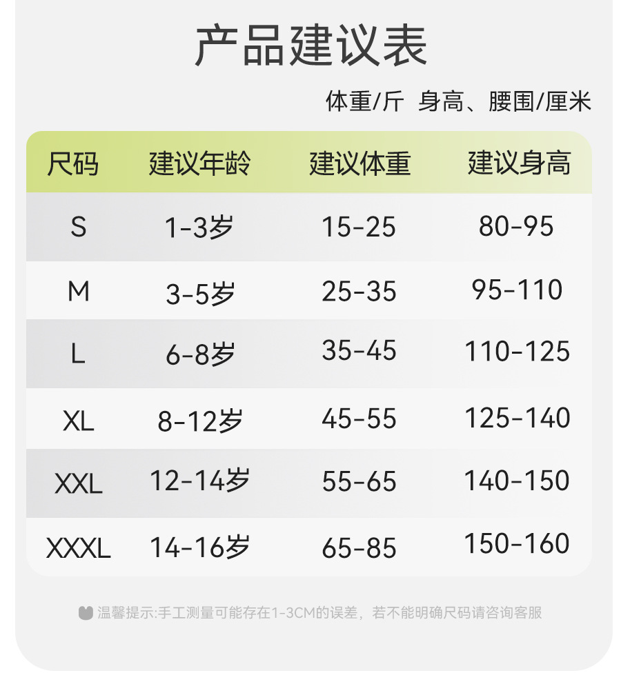 | xl size suggestion 8-10 years old weight 22.50 kg-27.50 kg(XL码建议8-10岁体重45-55斤) | USD $0.0 | 893 piece available |