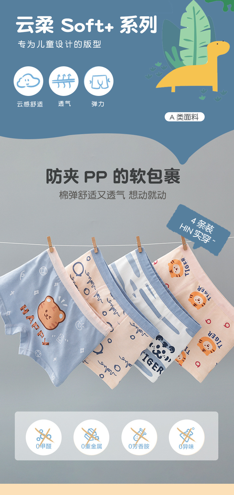 精梳棉儿童内裤男童A类棉男孩学生短裤透气宝宝四角裤夏季薄款平