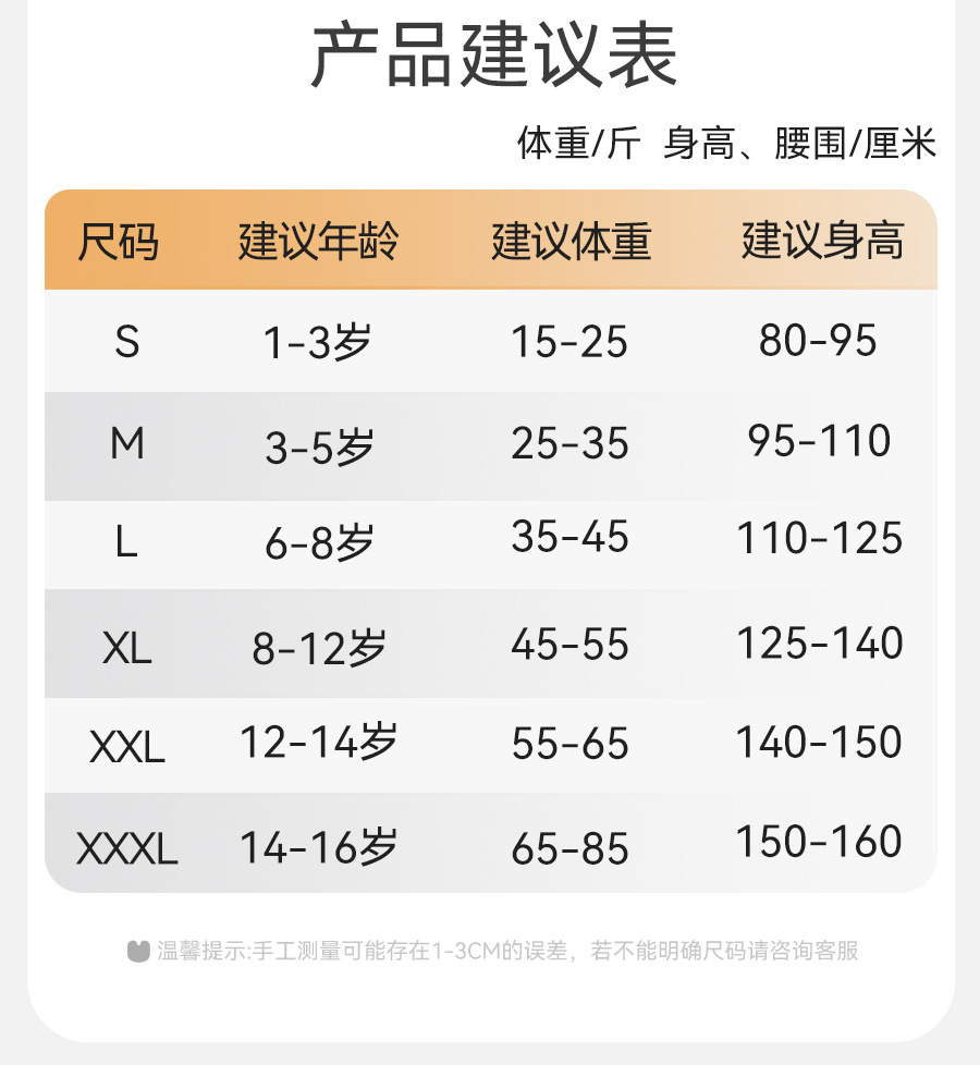 | xl size suggestion 8-10 years old weight 22.50 kg-27.50 kg(XL码建议8-10岁体重45-55斤) | USD $0.0 | 104 piece available |