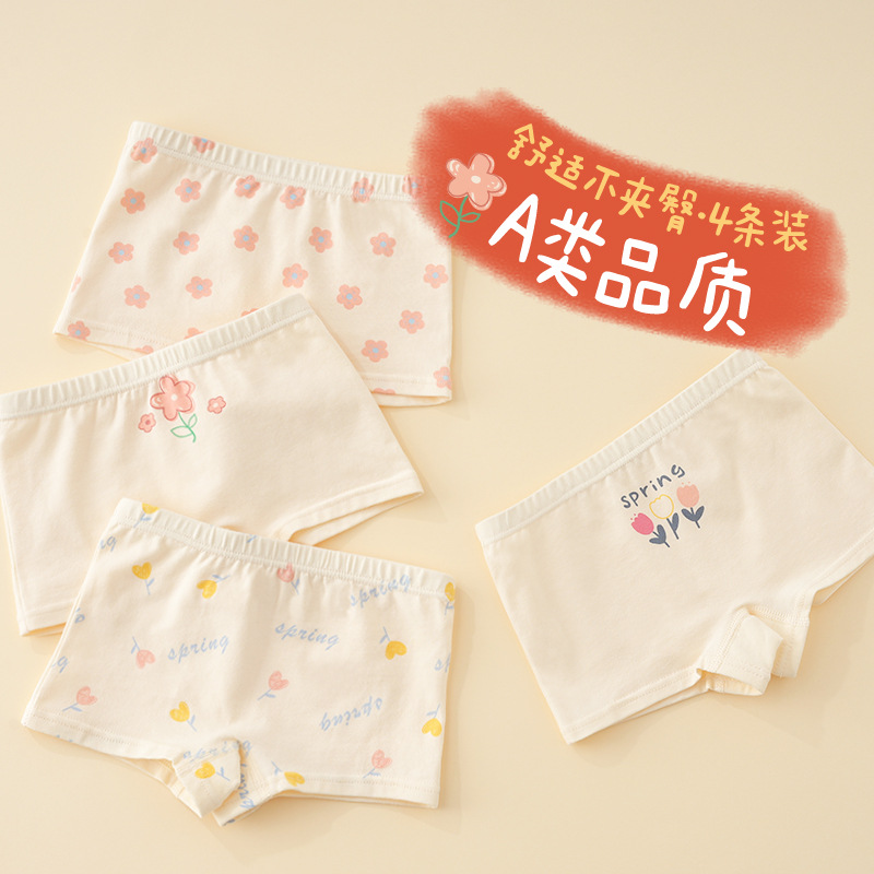 女童内裤儿童四角裤棉女宝宝小女孩平角短裤A类棉不夹屁屁