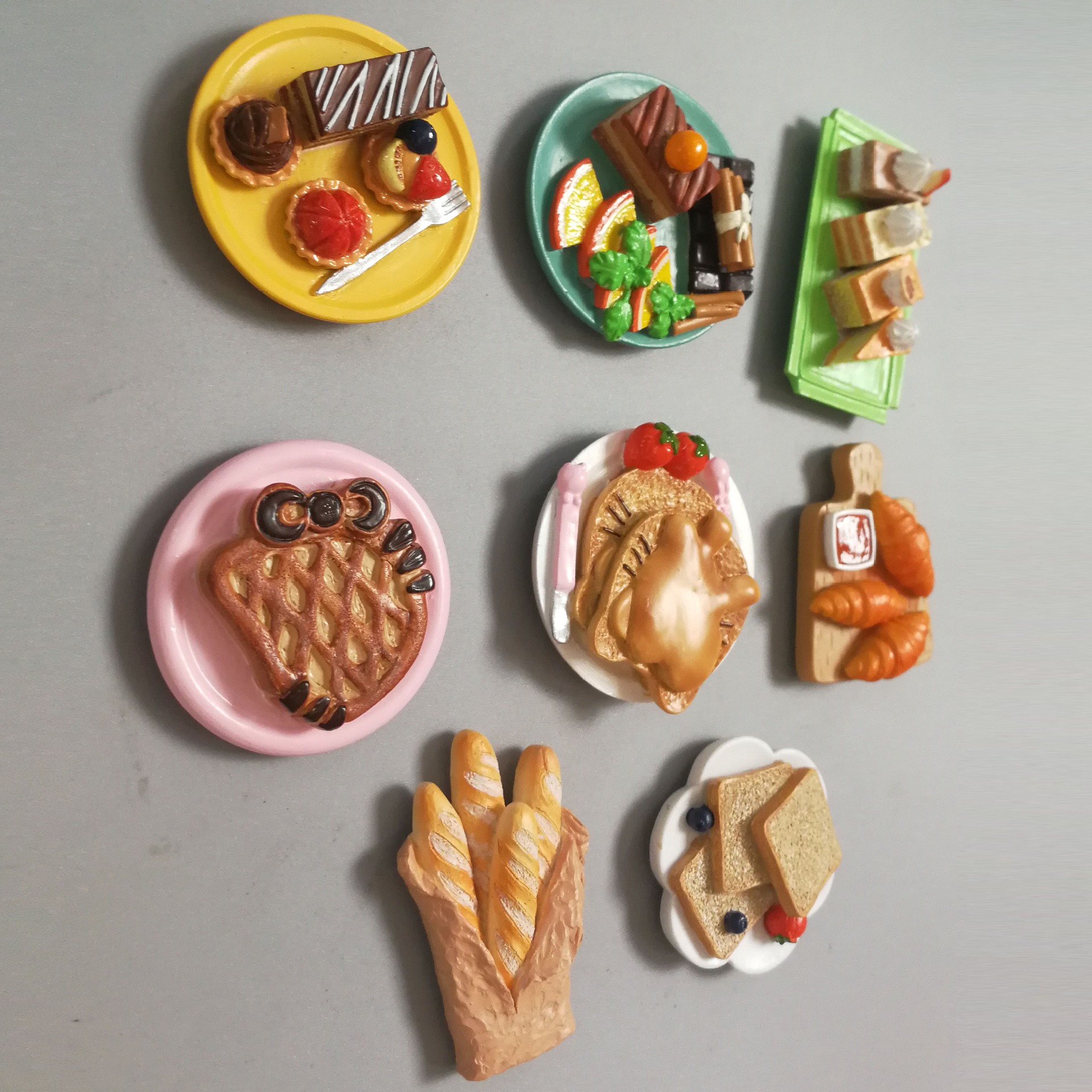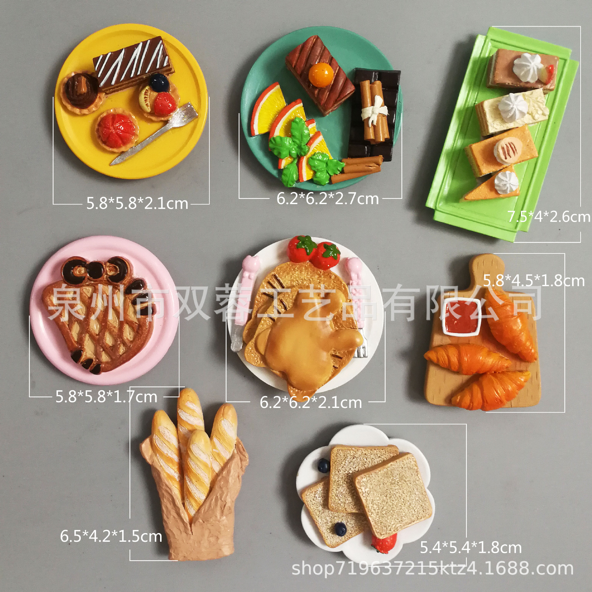 冰箱贴仿真食玩3D树脂磁性开关贴面包抖音食物爱心甜点食玩冰箱贴