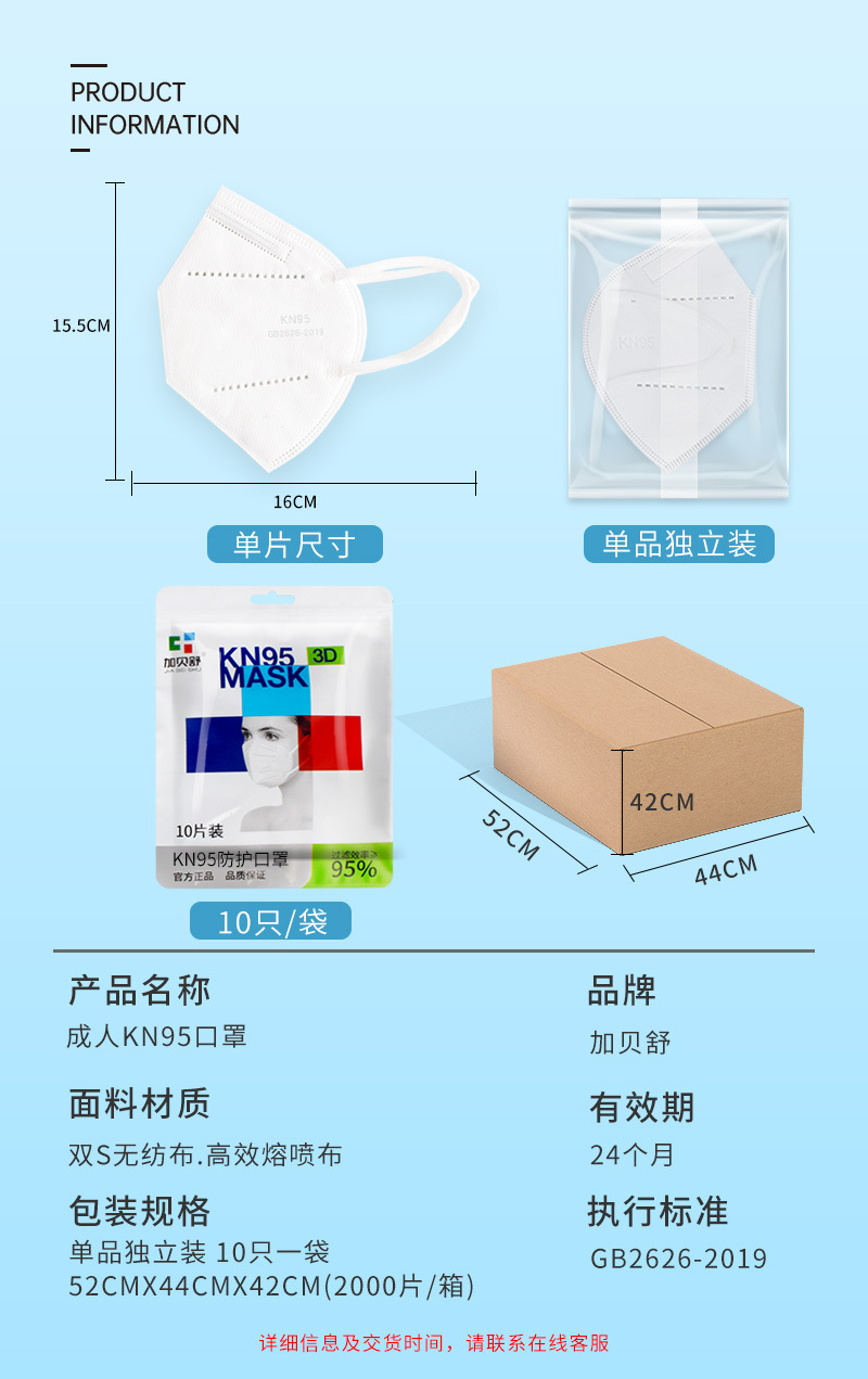 加贝舒成人一次性5层KN95防护口罩3D立体独立装防尘口罩工厂批发