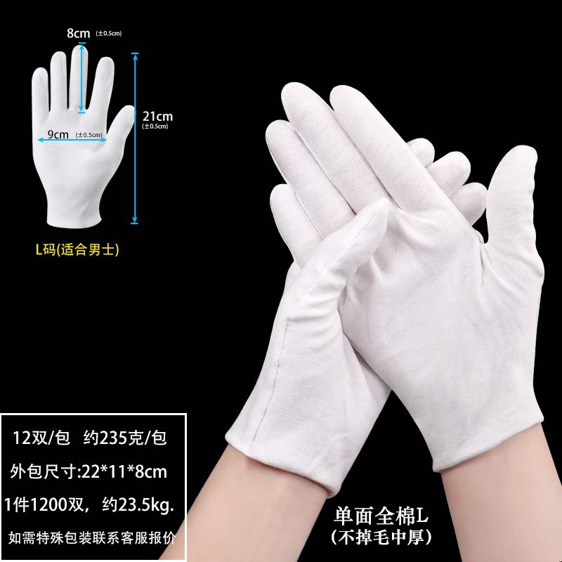 厂家批发加厚劳保作业手套盘珠文玩礼仪棉手套工作防护纯棉白手套
