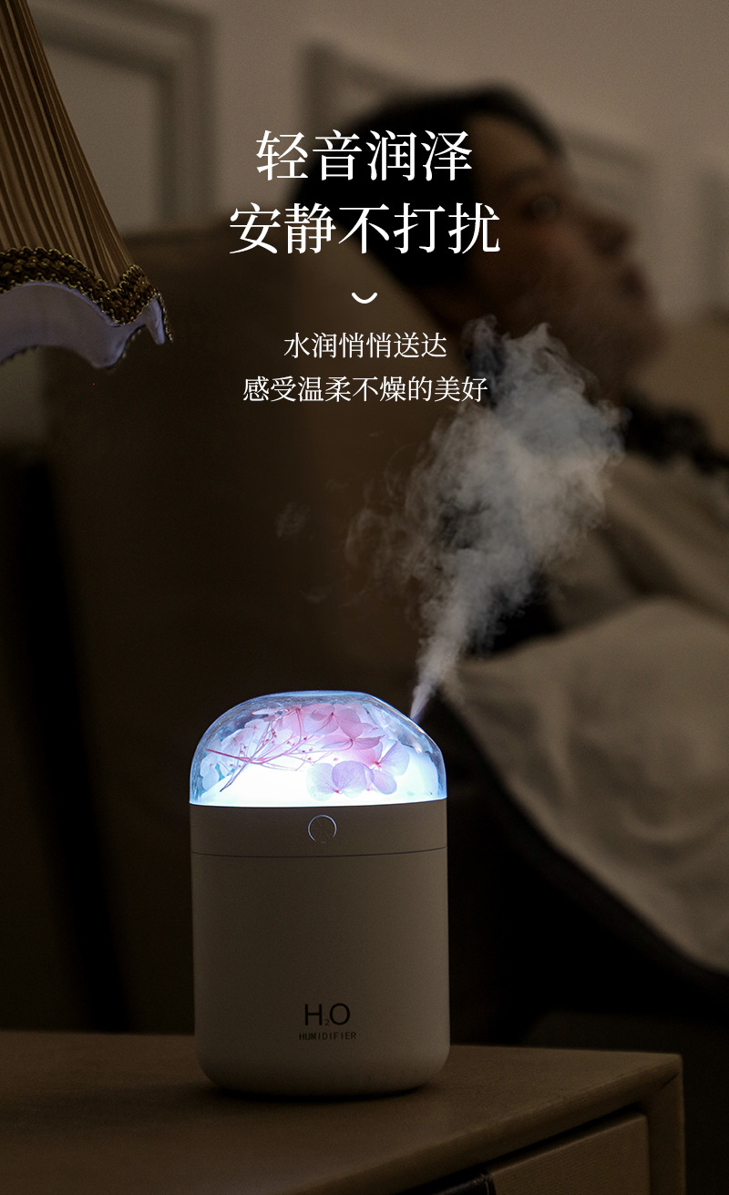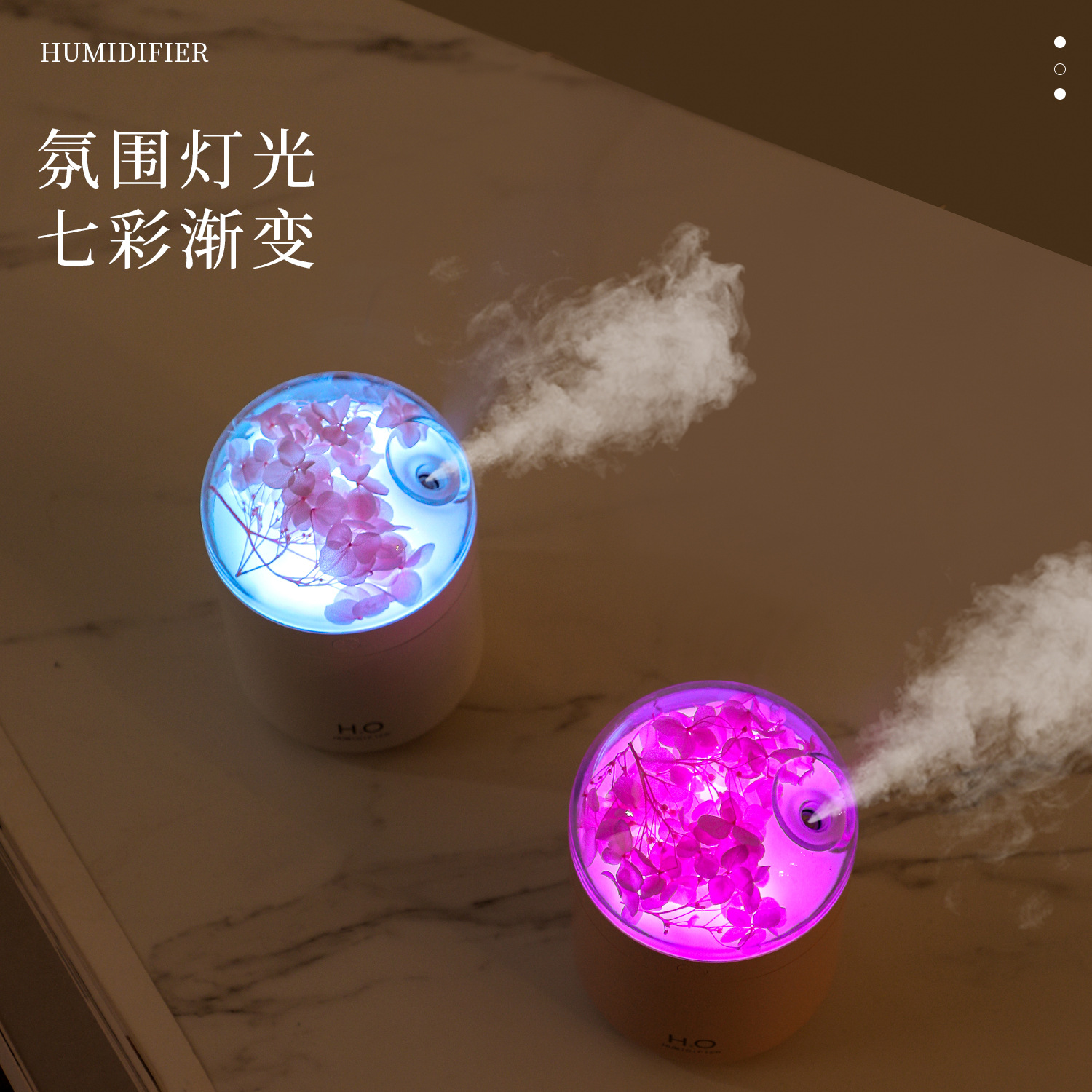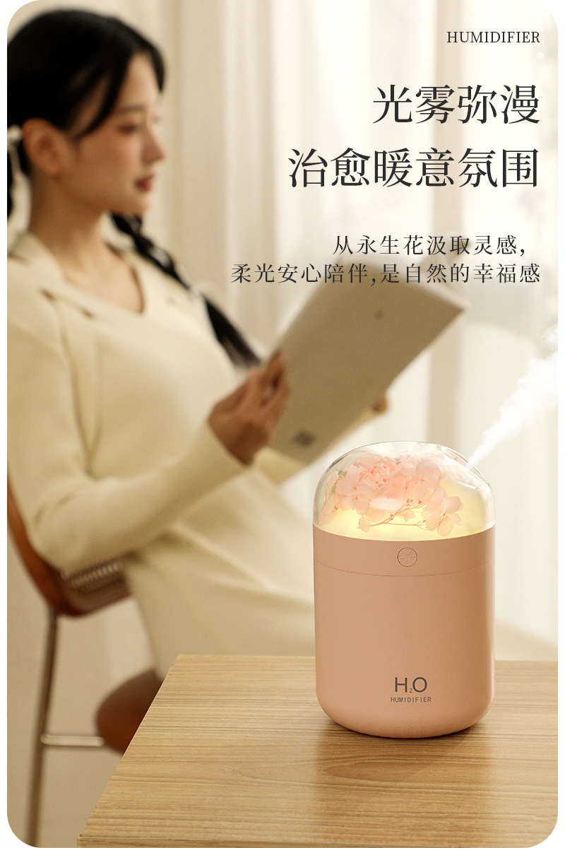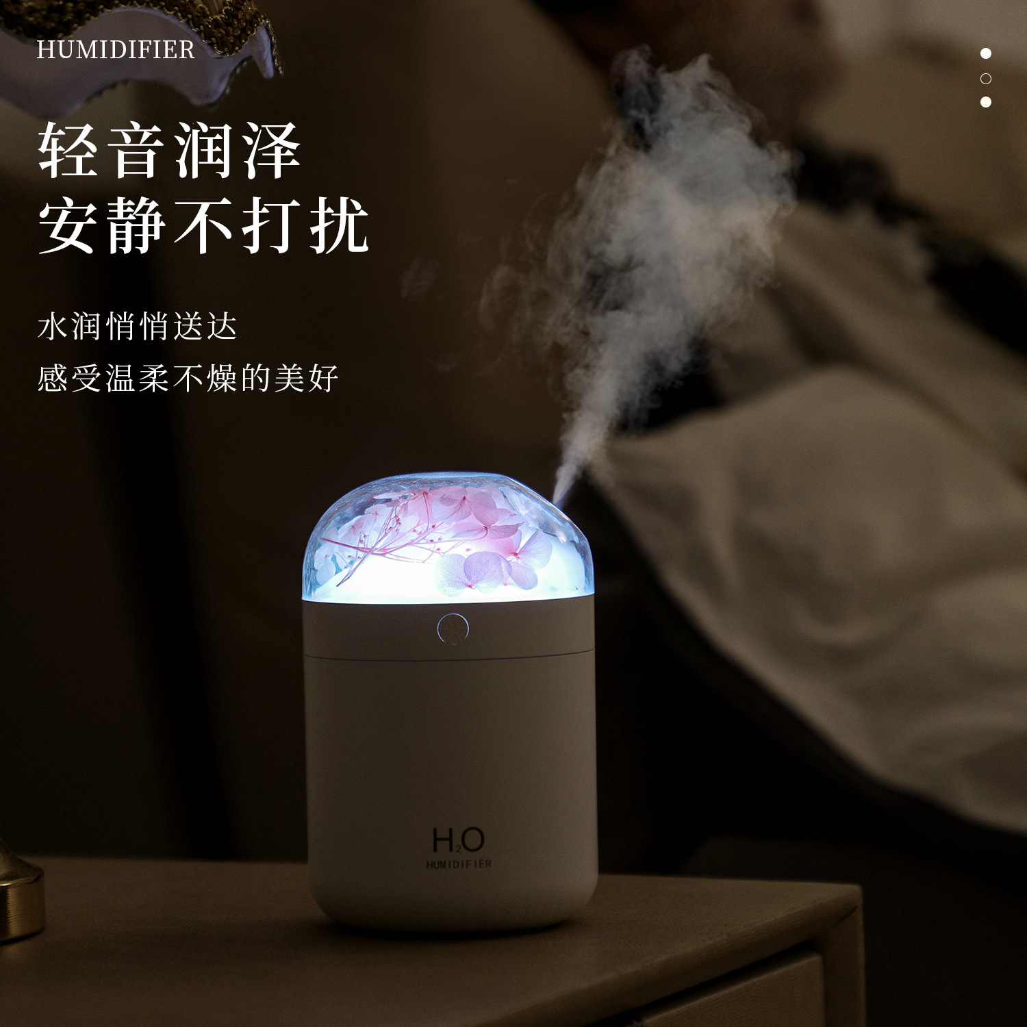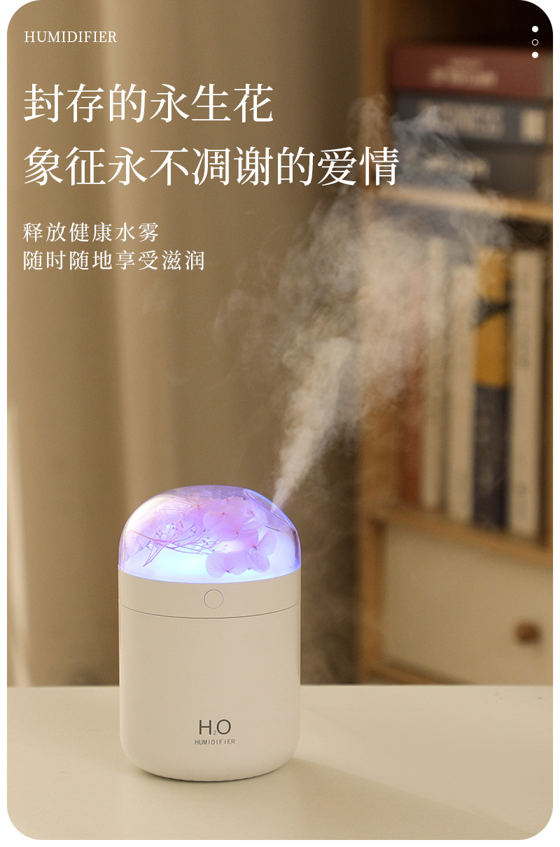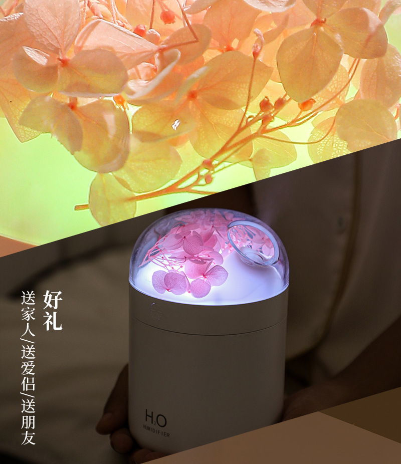 创意DIY永生花加湿器 家用卧室床头氛围灯补水仪 节日礼品加湿器
