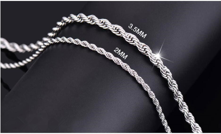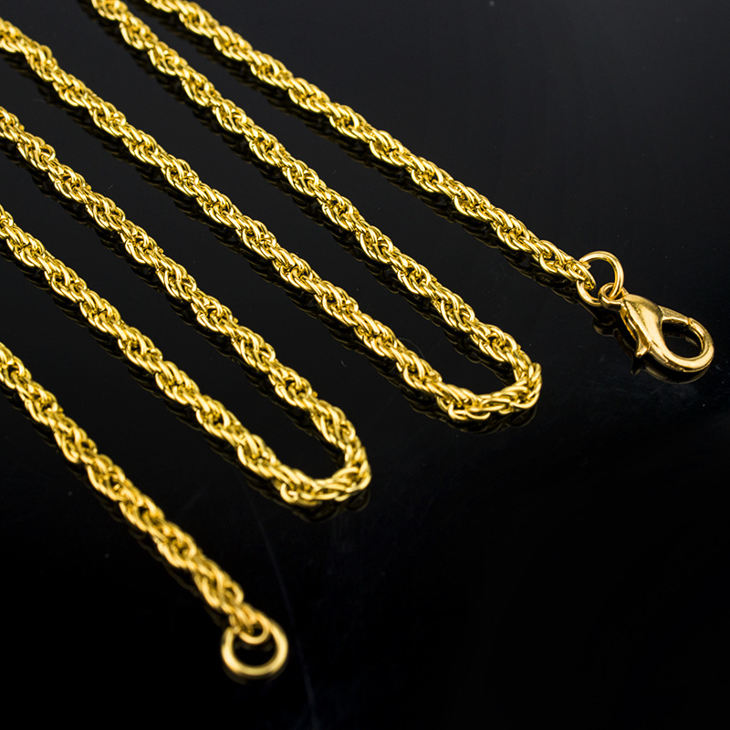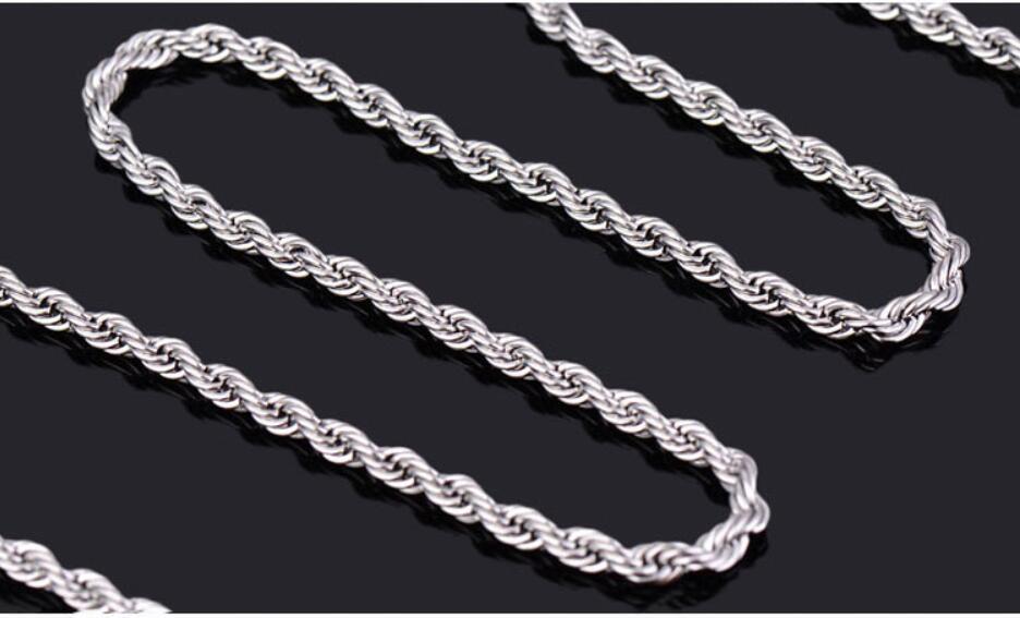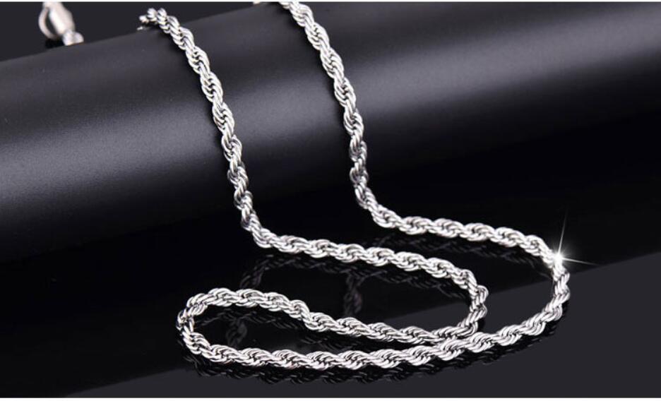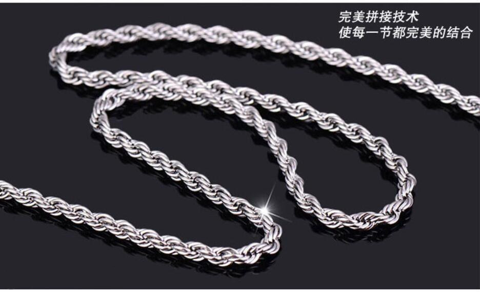 厂家直销外贸热销韩版潮流首饰镀银3mm闪扭绳麻花项链一件批发