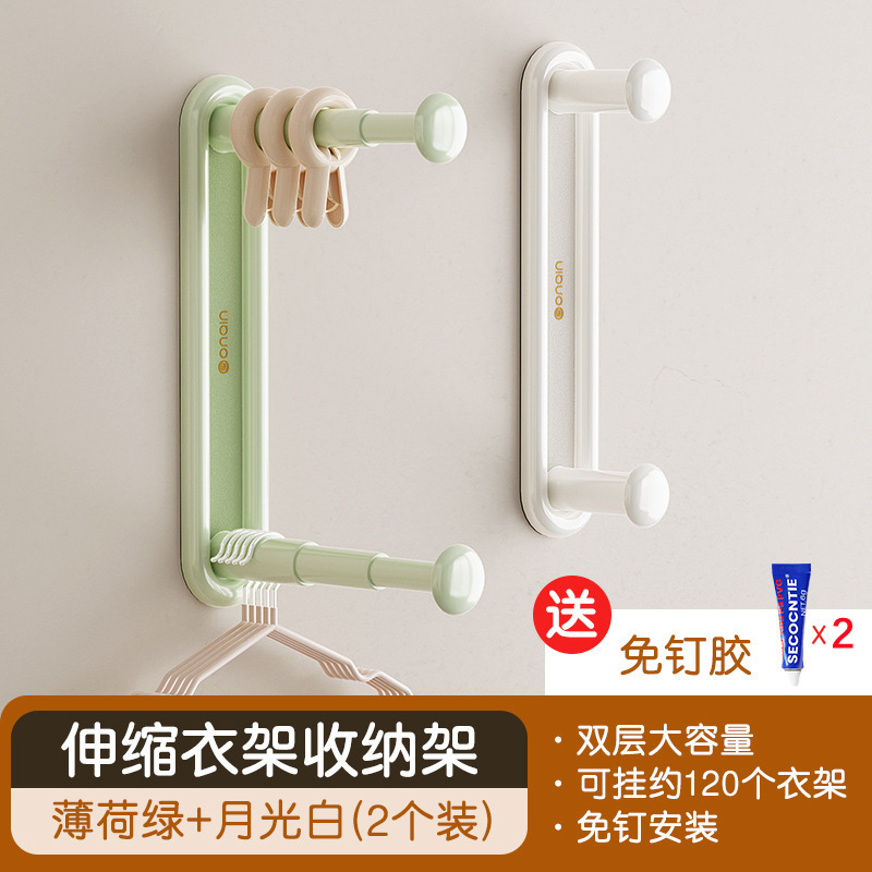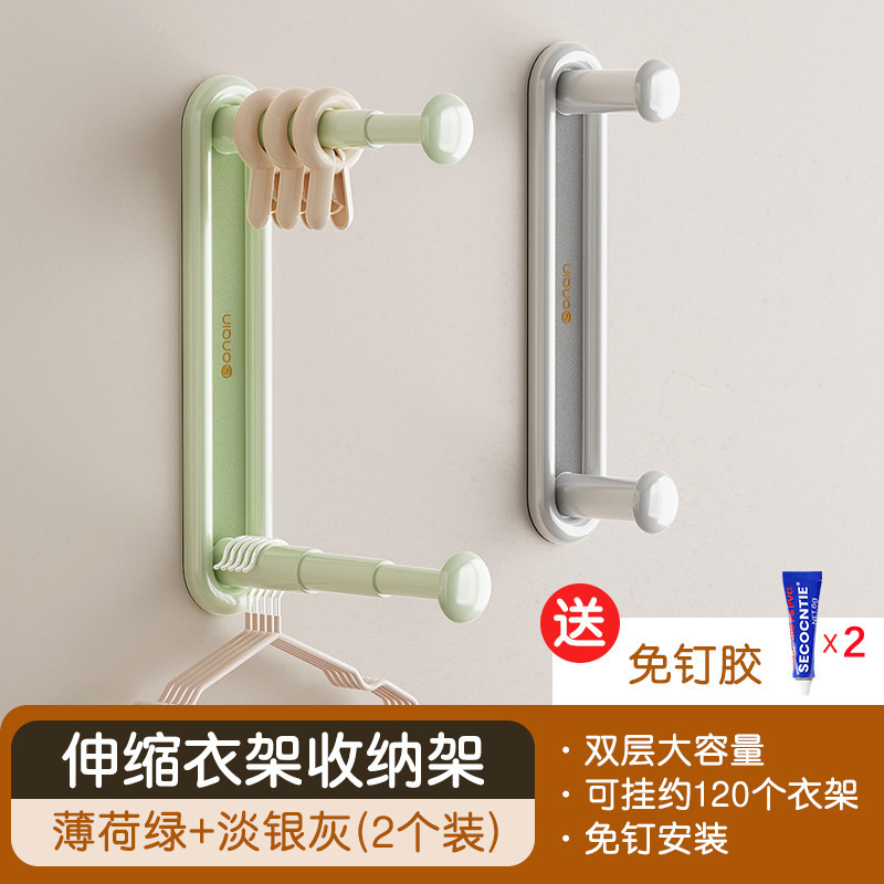 挂衣架架子可伸缩壁挂式收纳架免打孔收纳神器阳台整理多功能家用