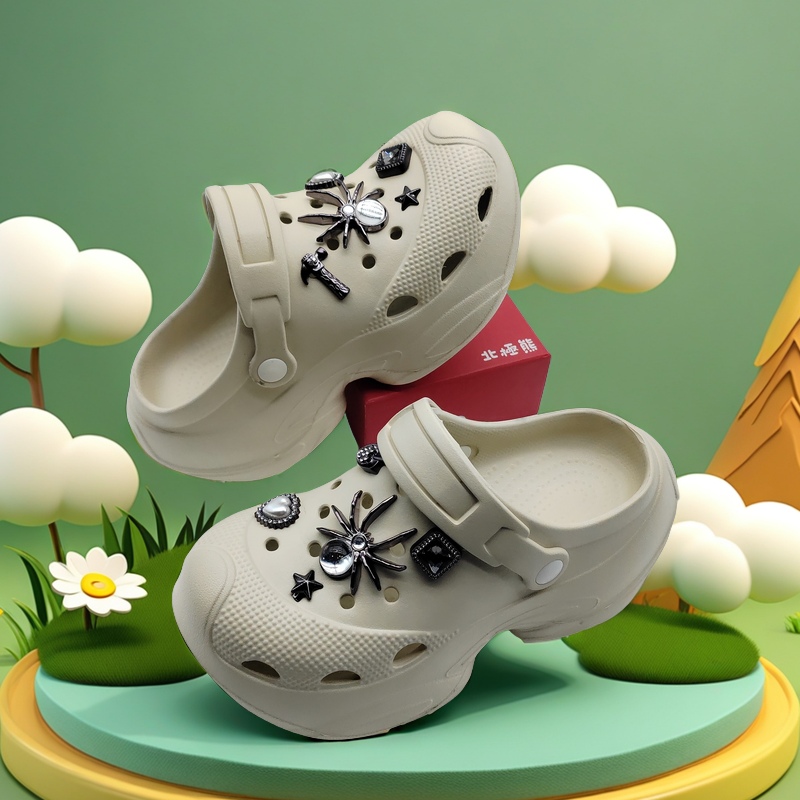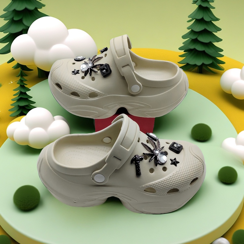 ins防滑女沙滩新款2025厚底凉拖鞋高跟洞洞鞋韩版水钻时尚增高外
