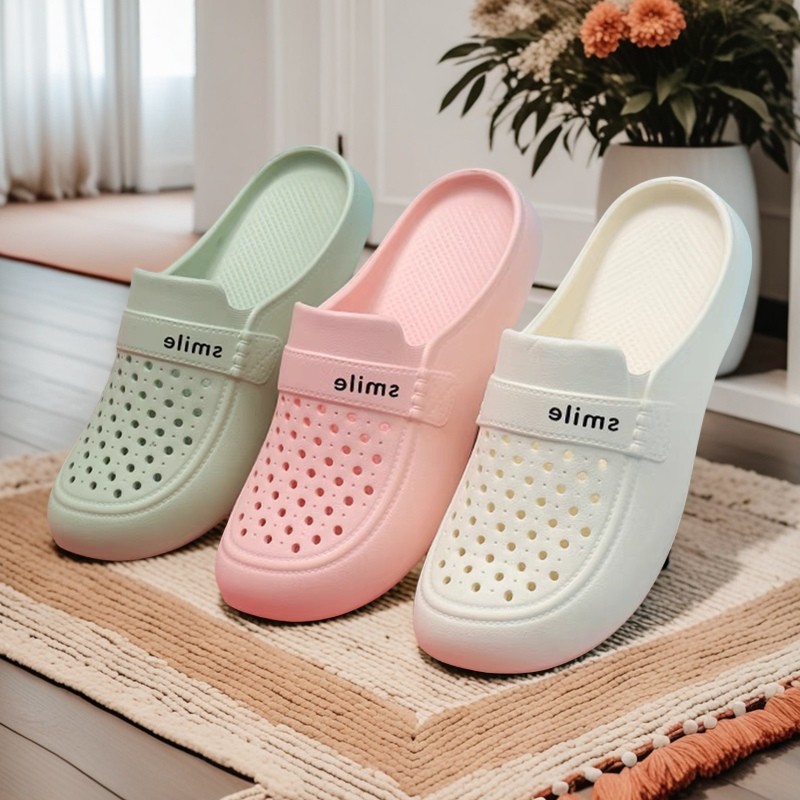 夏季凉拖鞋EVA女包头系带外穿缕空沙滩鞋洞洞鞋甜美平底拖鞋