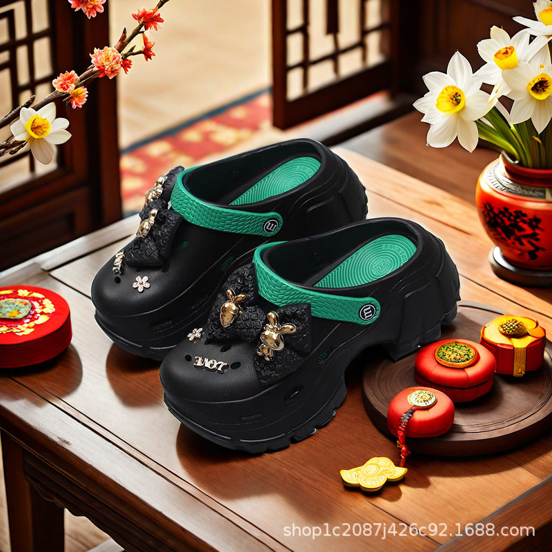 松糕底洞洞鞋女厚底防滑休闲百搭夏季时尚外穿高跟增高包头沙滩鞋