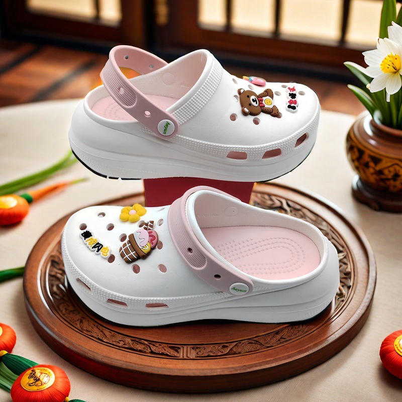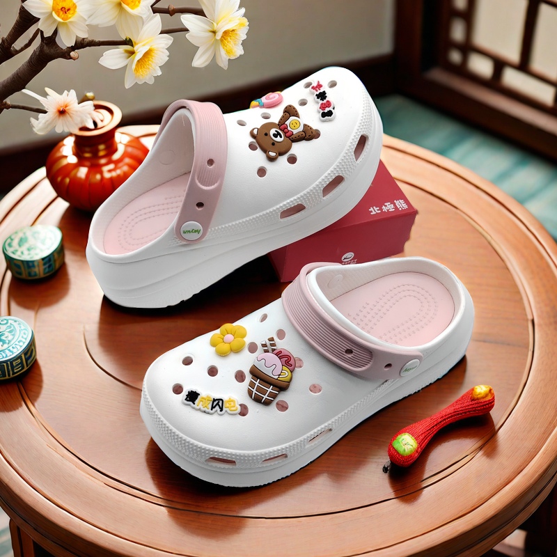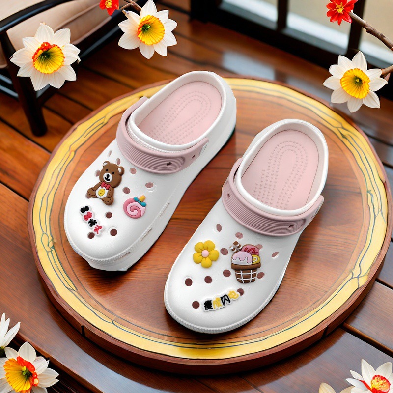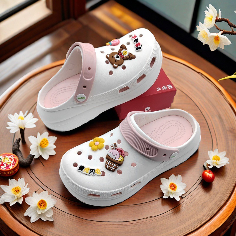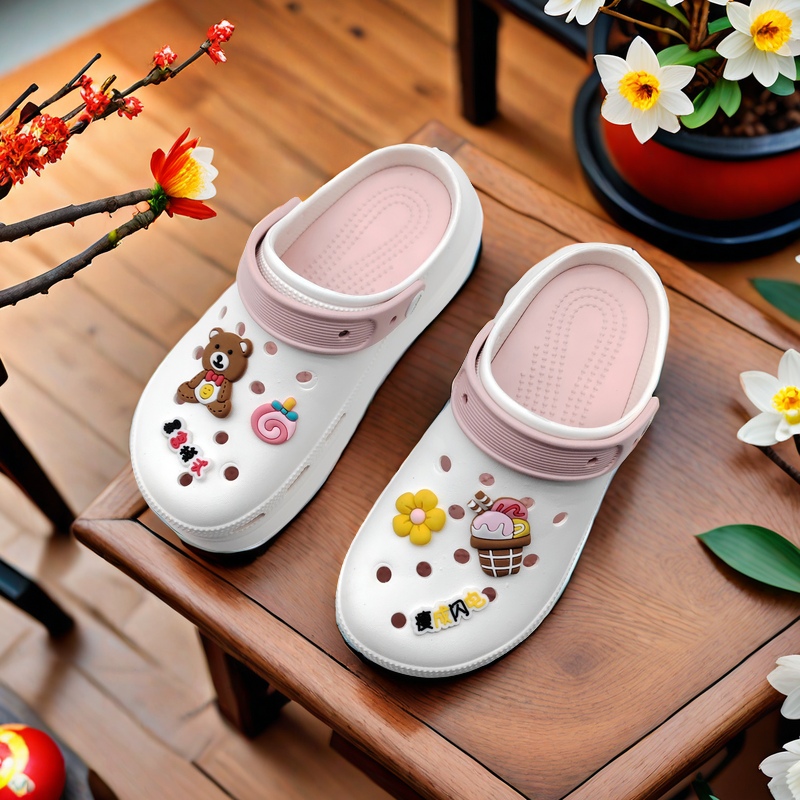 新品巧克力熊洞洞鞋鞋花鞋扣装饰扣配饰花园鞋PVC鞋饰DIY配件跨境