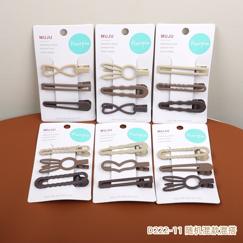 韩版奶茶色无痕发夹3只套装喷漆鸭嘴夹简约金属边夹碎发刘海夹