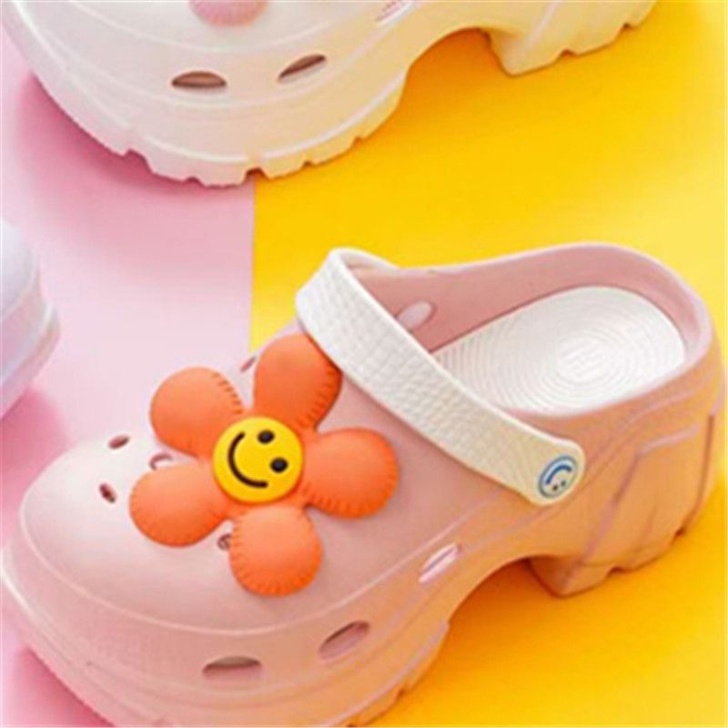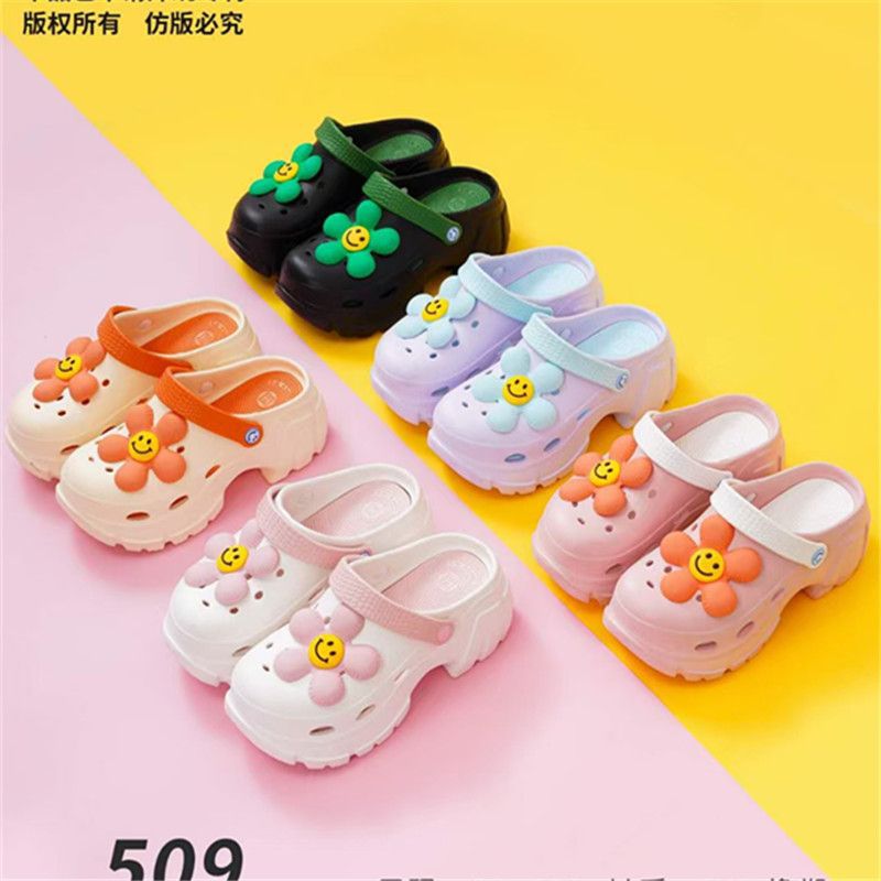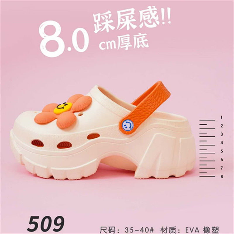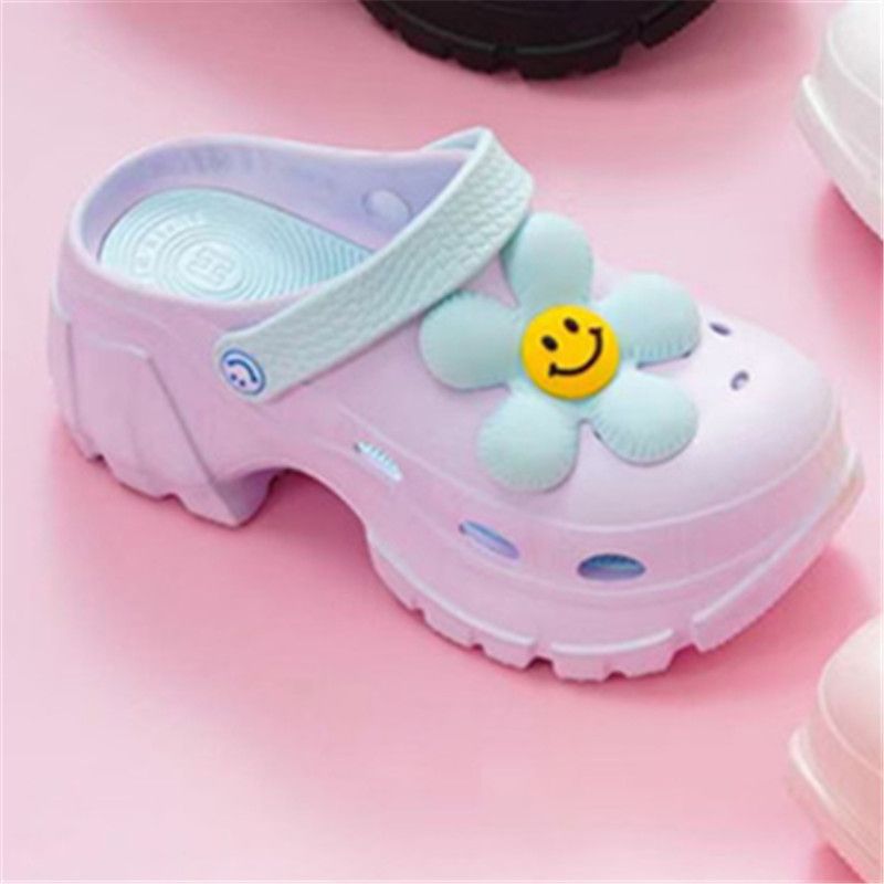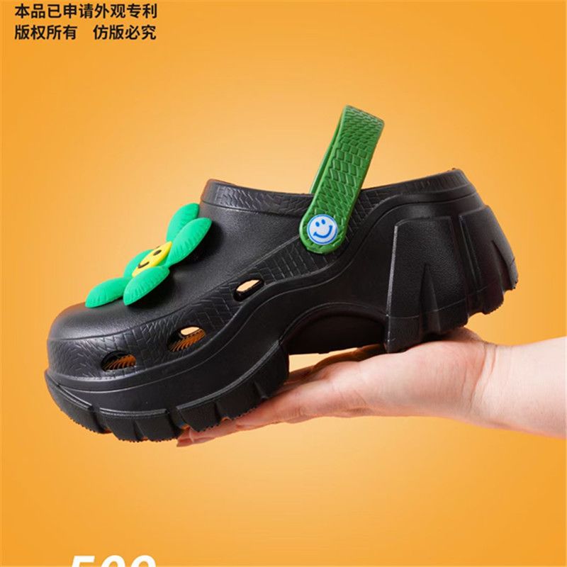 厚底洞洞鞋女夏季时尚百搭松糕底小个子增高两穿包头拖鞋沙滩凉鞋