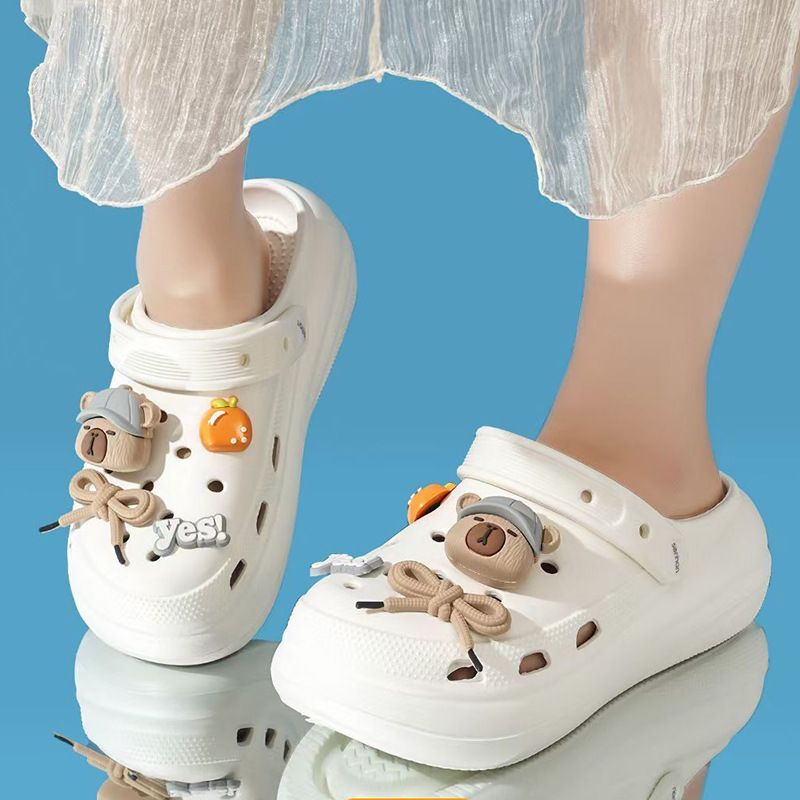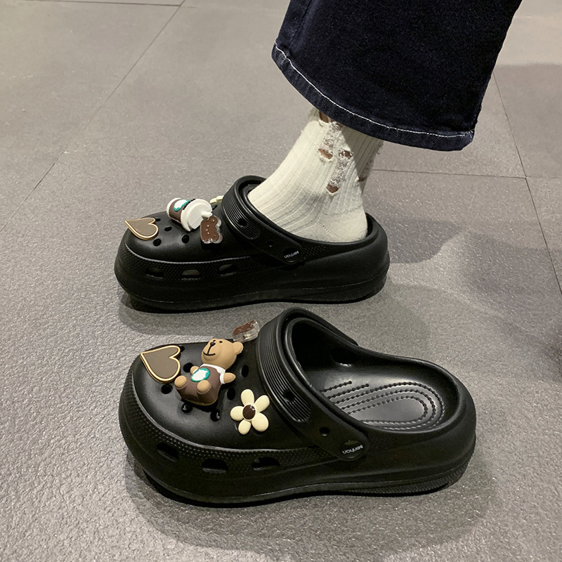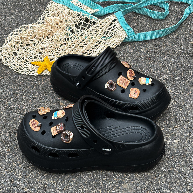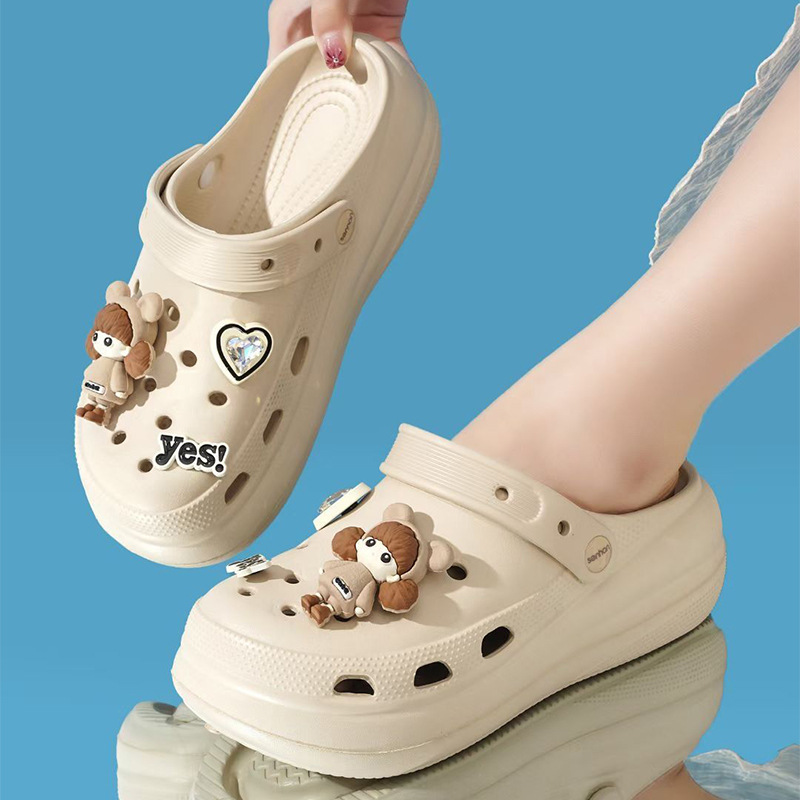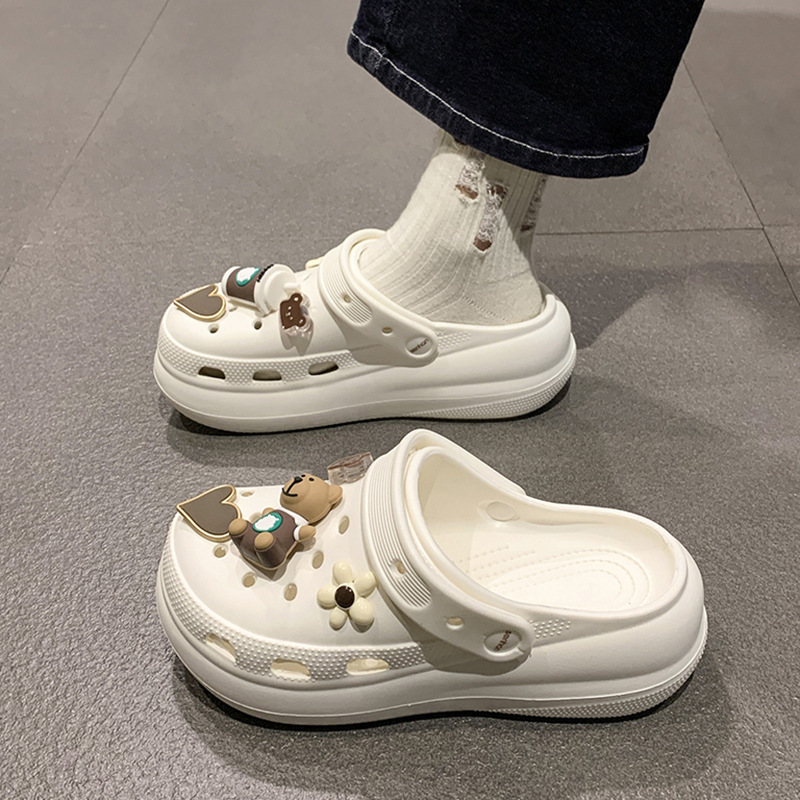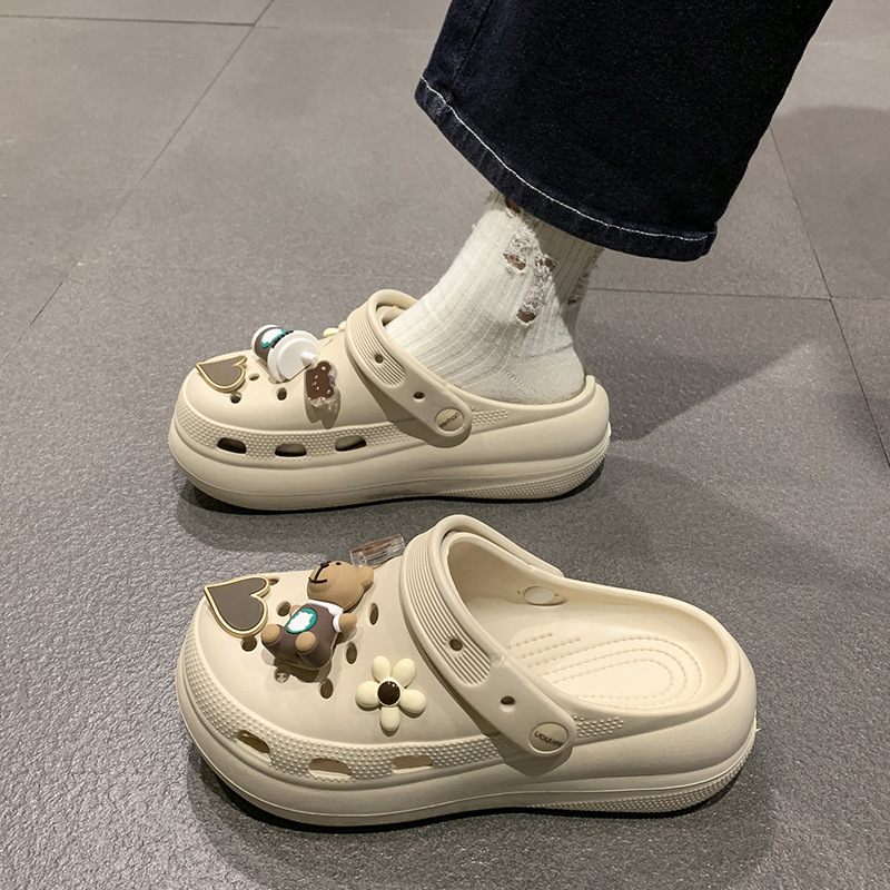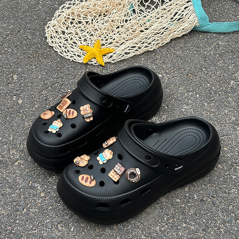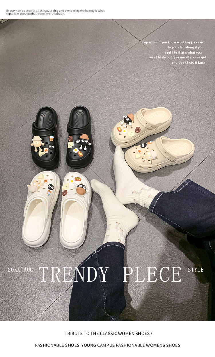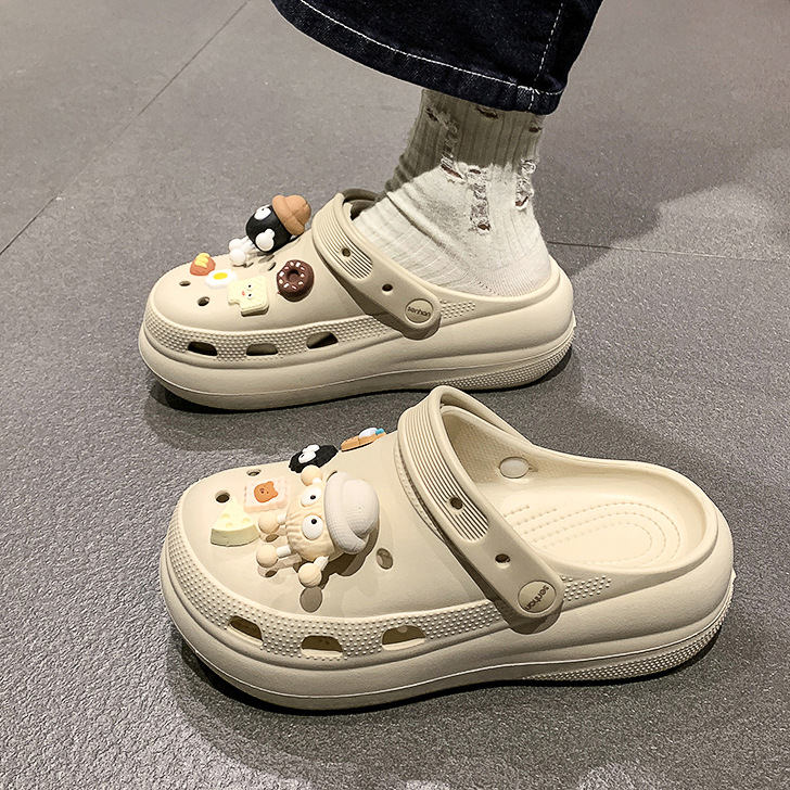 泡芙云朵洞洞鞋踩屎感夏季外穿女款超厚底休闲包头拖网红凉拖鞋女