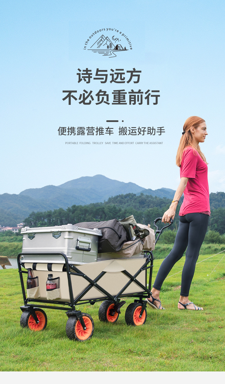 户外手拉折叠露营车营地拖车买菜购物野营摆摊露营推车营地小推车