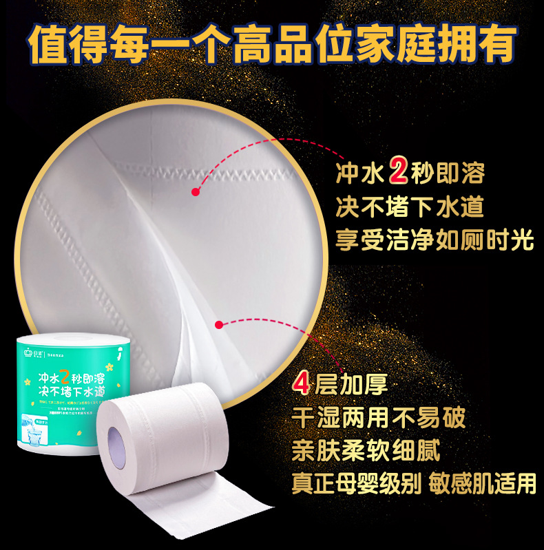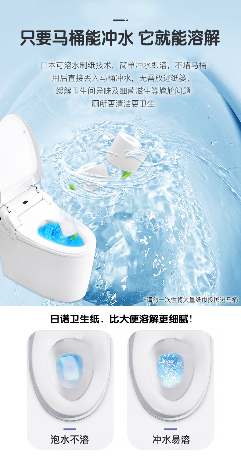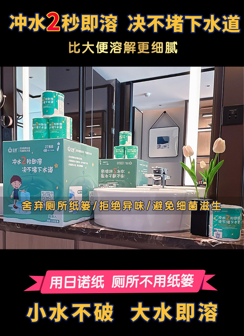 日诺4层1提120g速溶水卷纸巾融水家用水溶有芯厕纸卷筒卫生纸批发