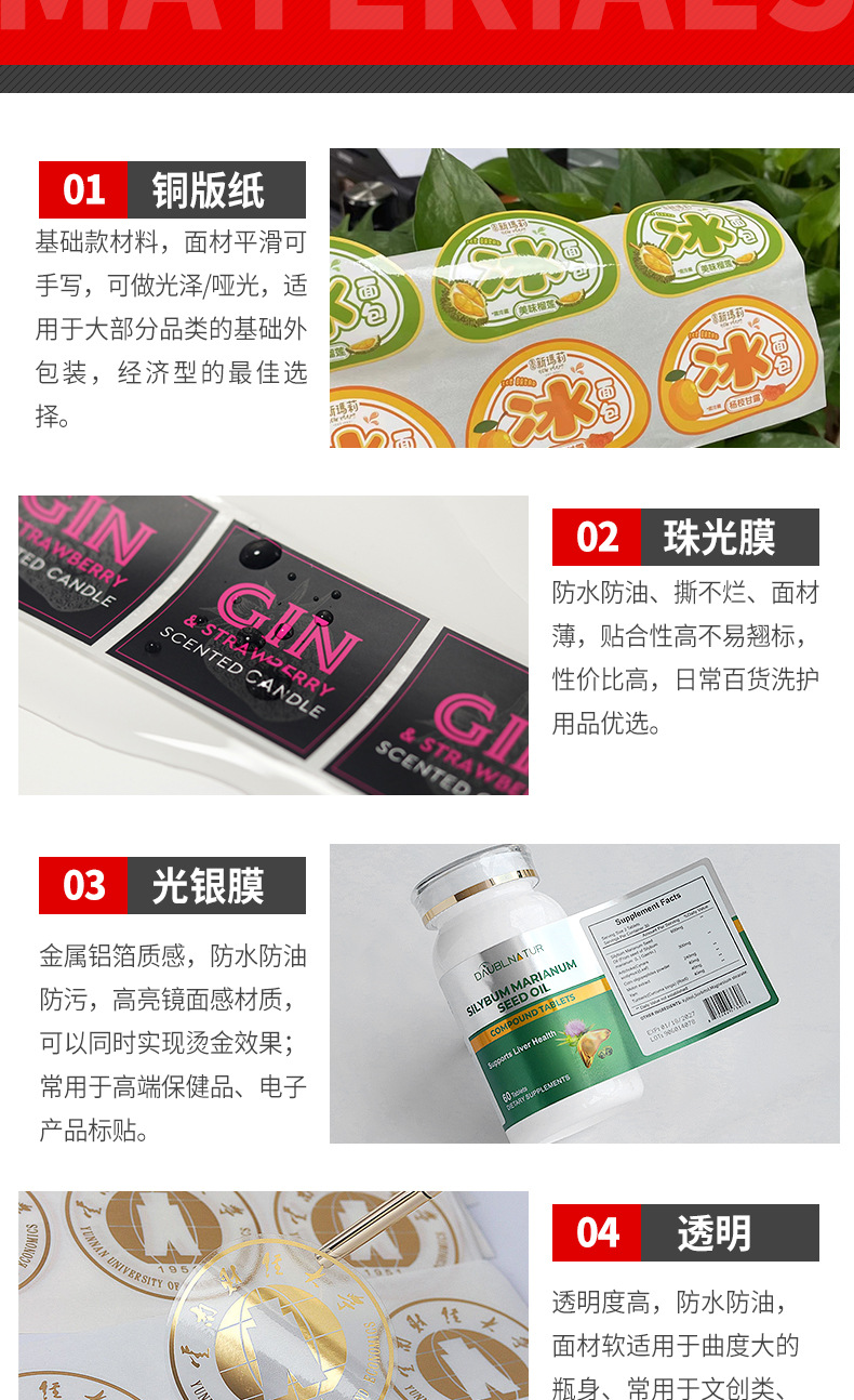 防水珠光膜瓶贴厂家供应玻璃瓶不干胶标签彩色食品包装贴纸卷筒