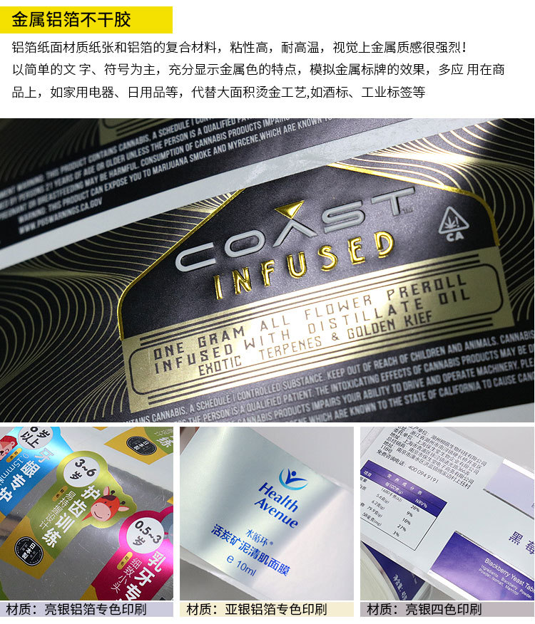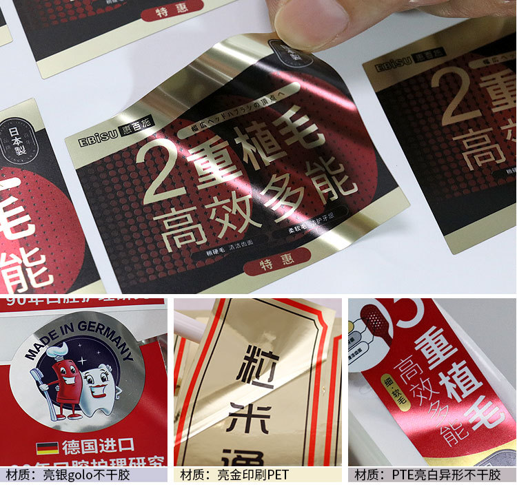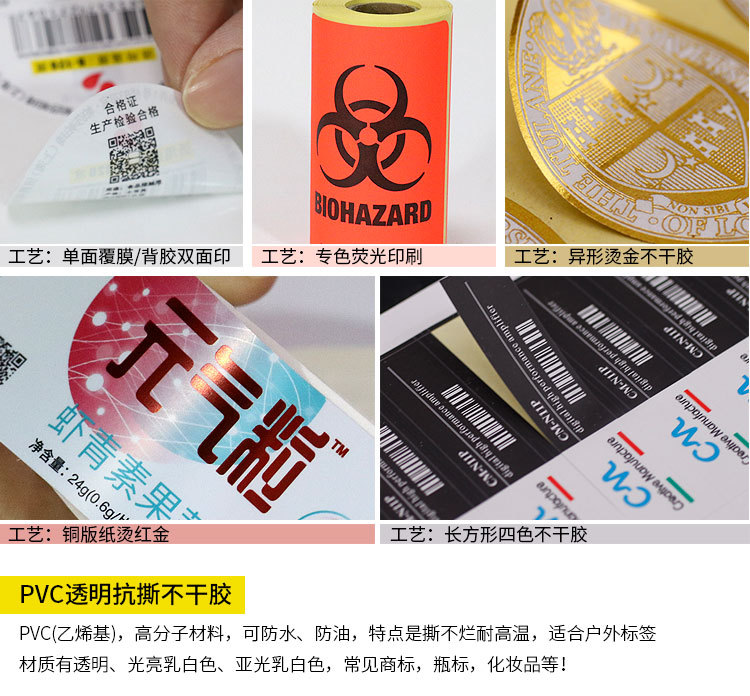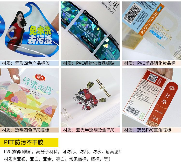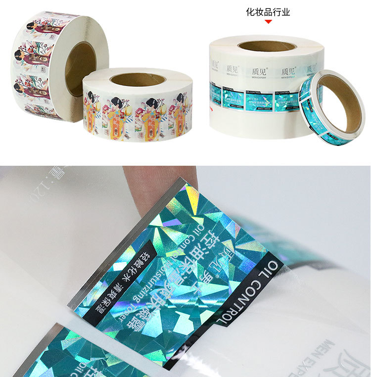 不干胶标签印刷铜版纸瓶贴烫金膜内贴妆品贴纸卷筒不干胶贴定 制