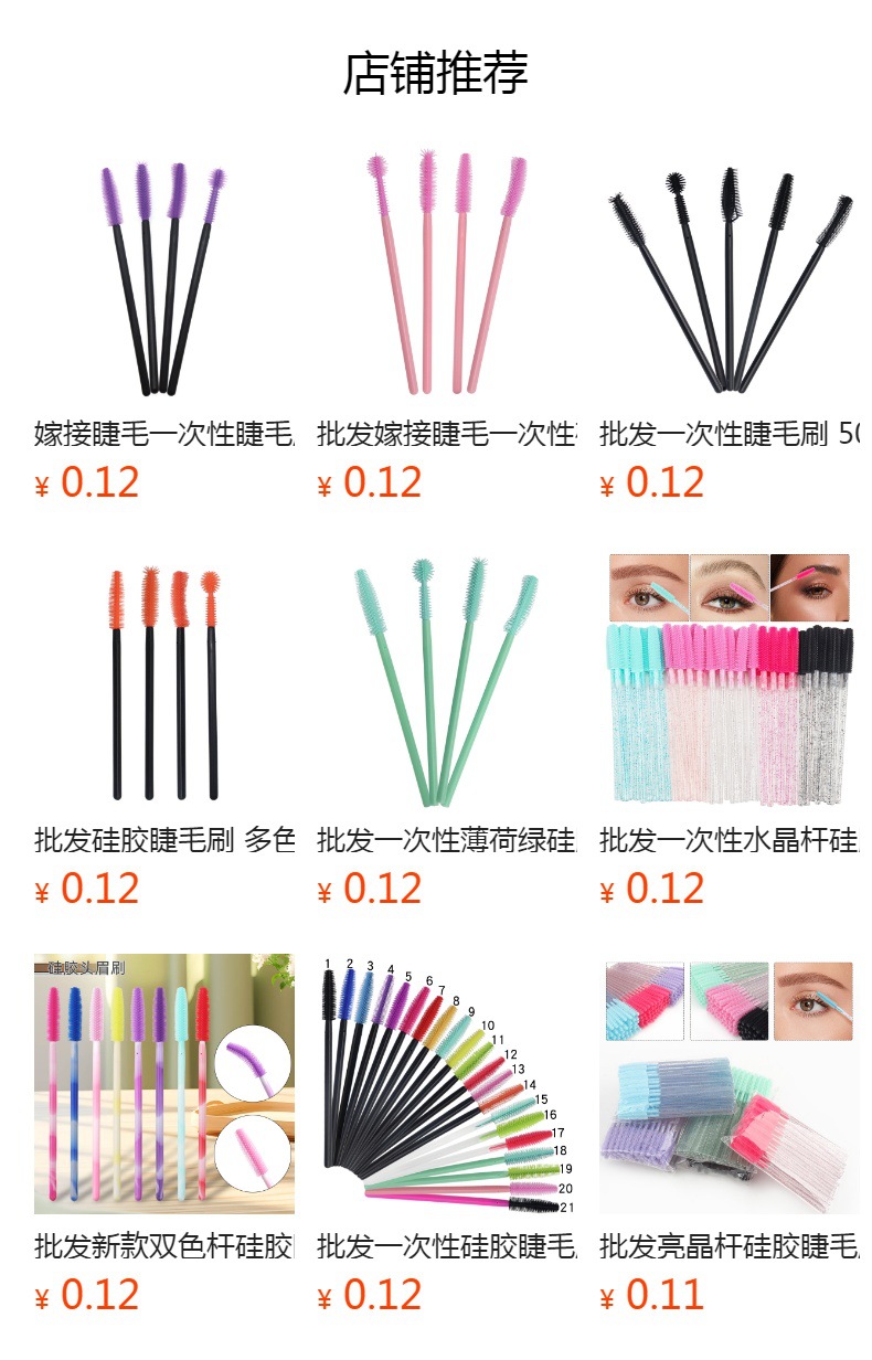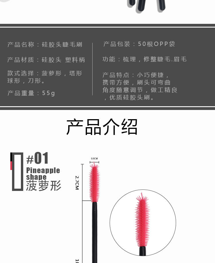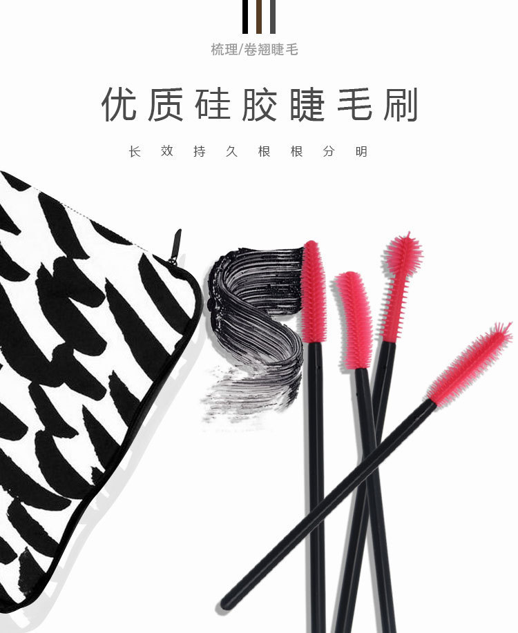 批发一次性硅胶睫毛刷 50支/包便携睫毛卷眉刷 螺旋化美睫硅胶刷