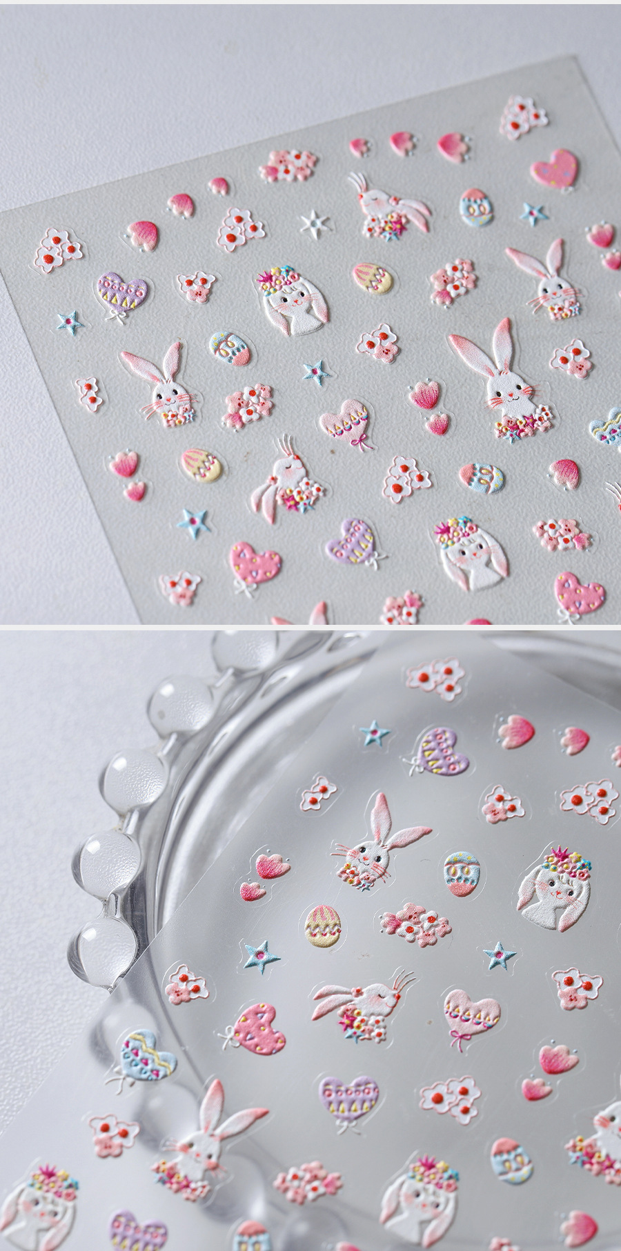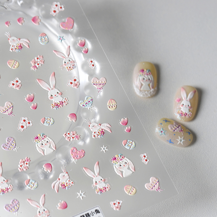 磨砂萌萌小兔背胶甲贴美甲饰品工厂批发