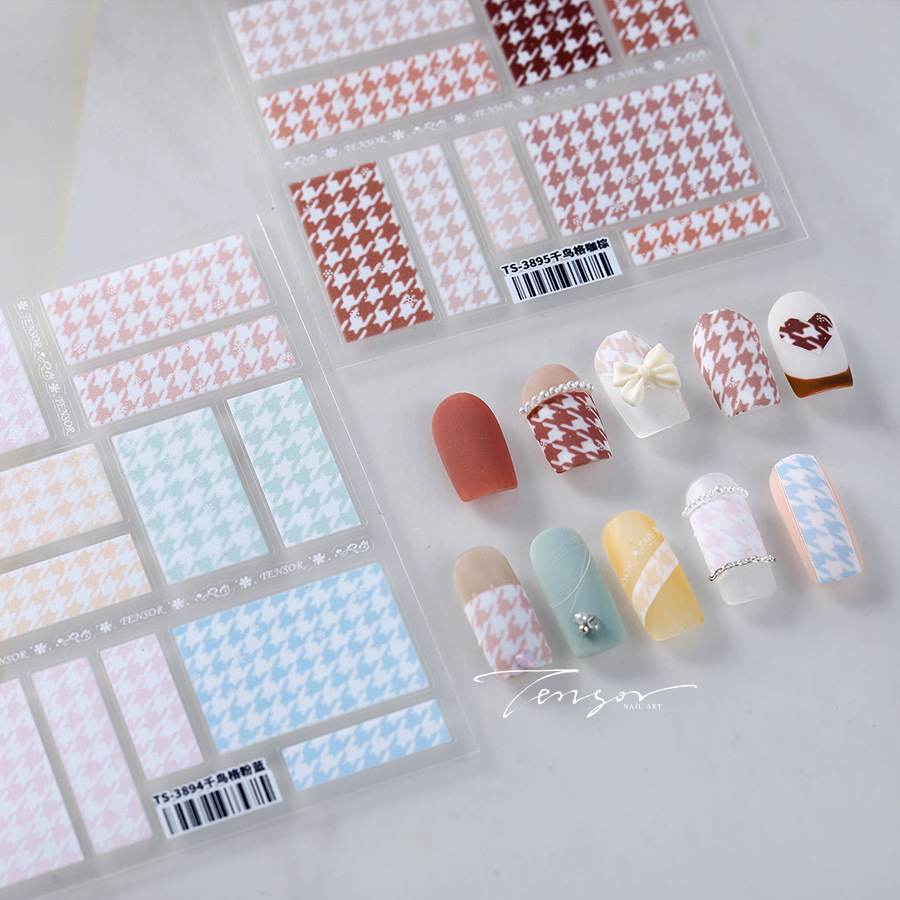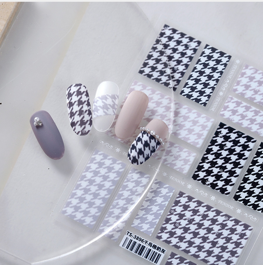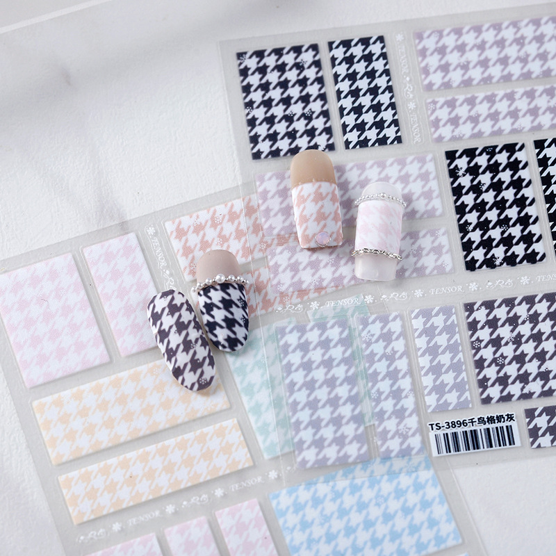 鸟格立体美甲贴纸格子背胶美甲贴系列贴纸