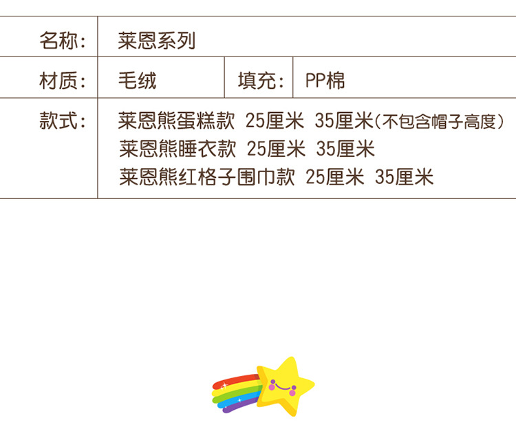 可爱动物蛋糕莱恩熊毛绒玩具公仔抱枕小熊装扮礼物泰迪熊生日礼物