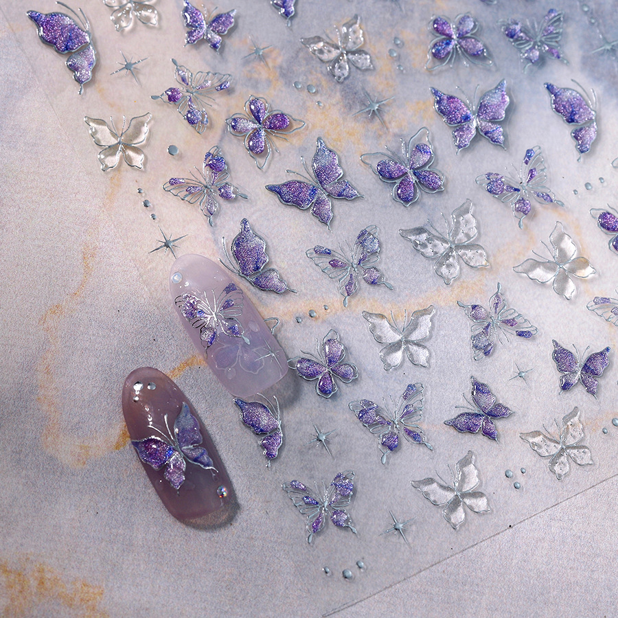 烫金美甲贴轻奢蝴蝶背胶美甲贴立体果冻胶系列