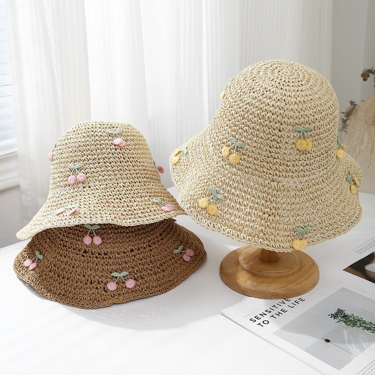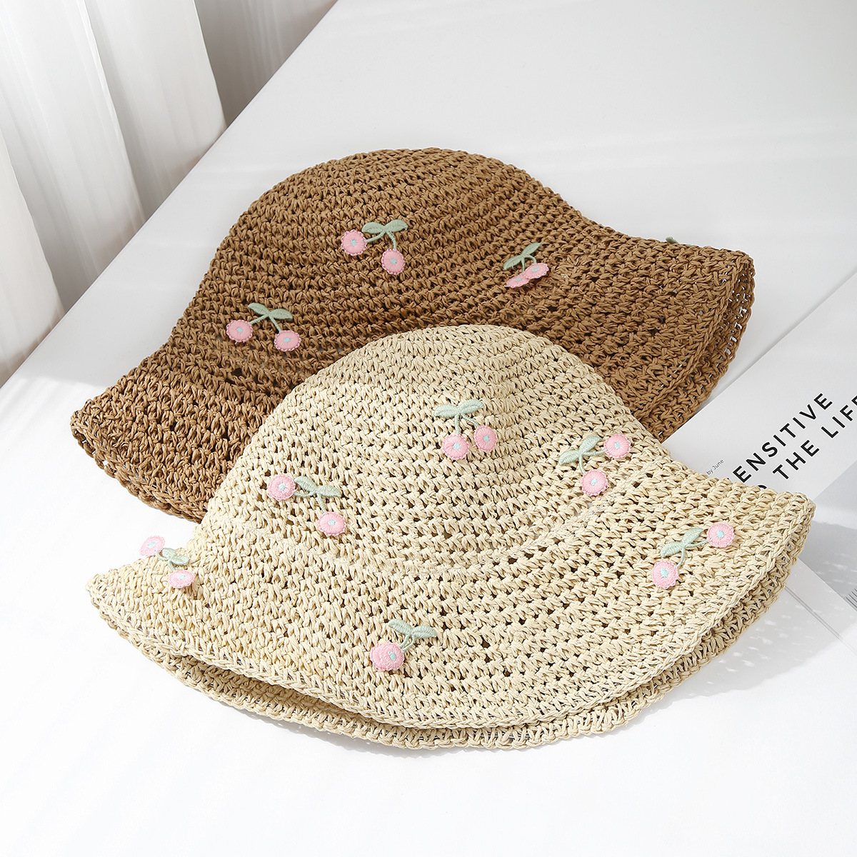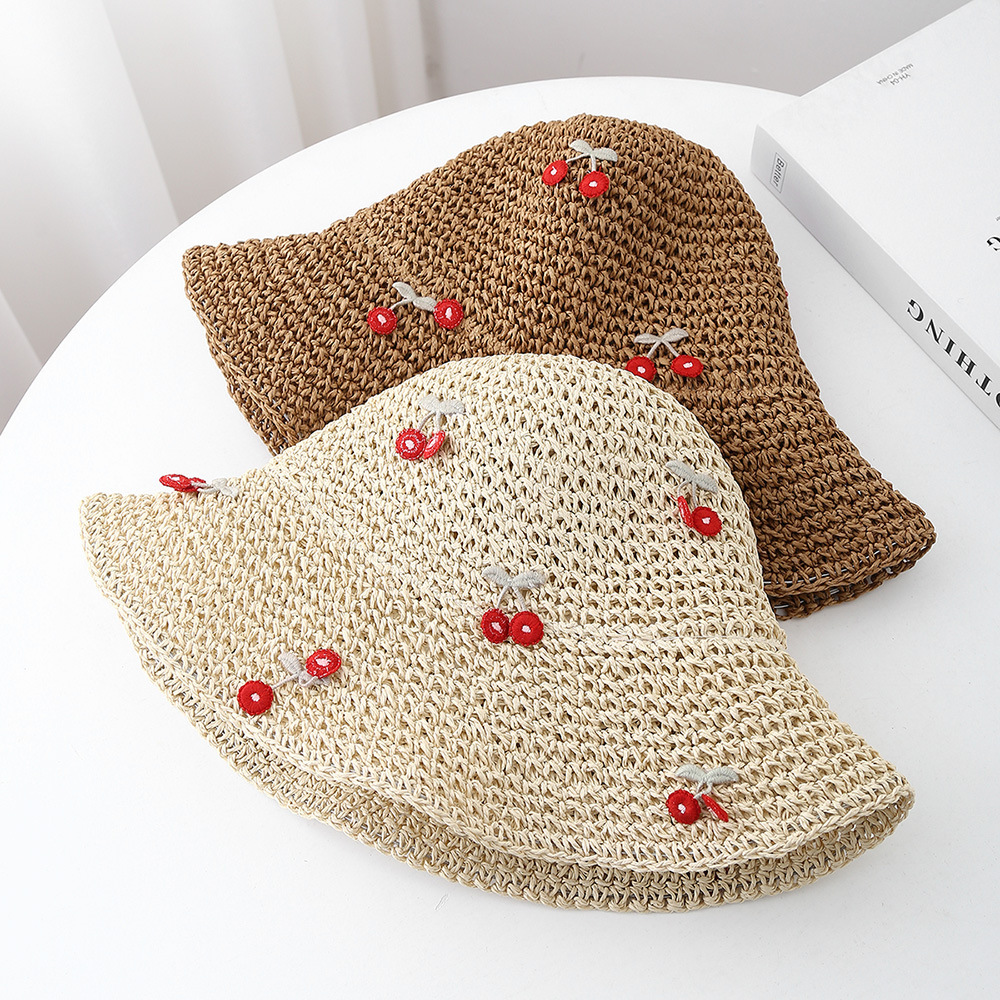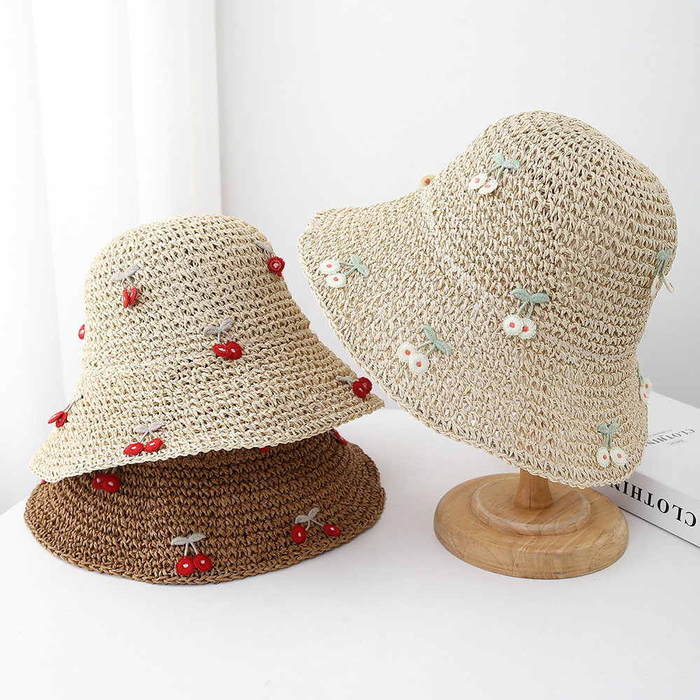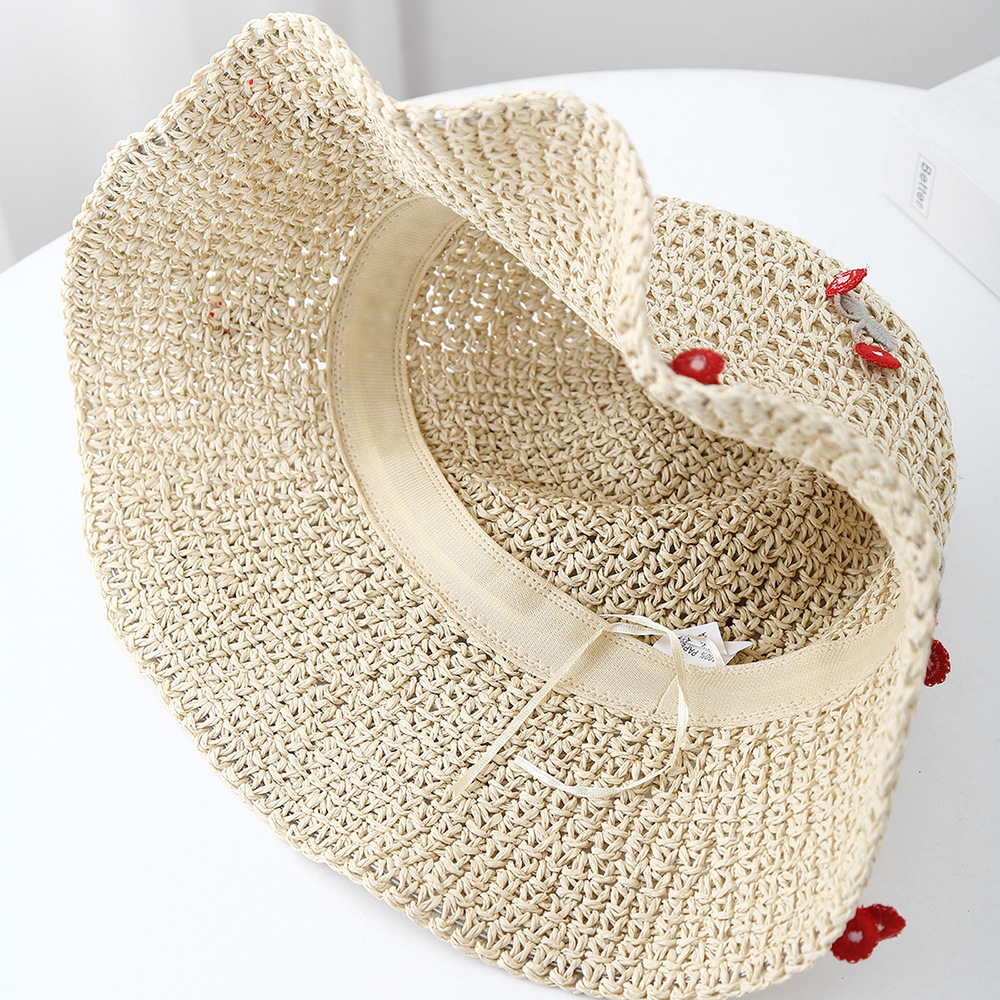 海边度假草帽女夏季甜美可爱蝴蝶结草编镂空渔夫帽遮阳防帽子