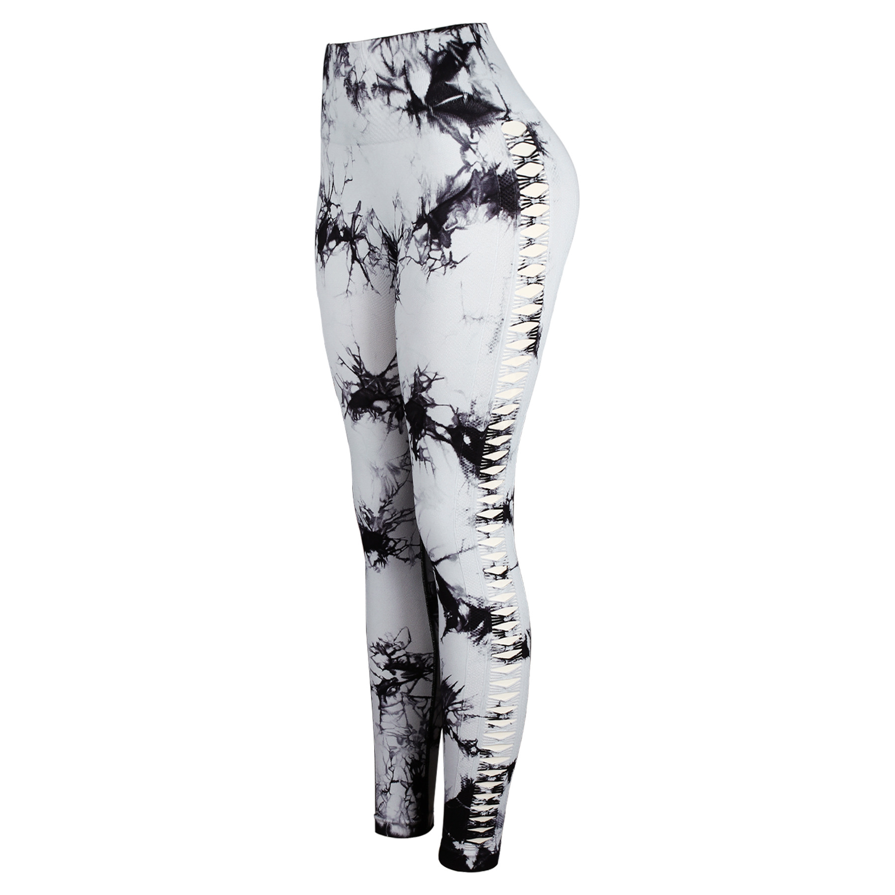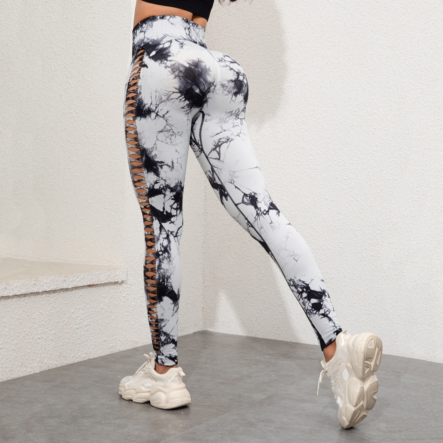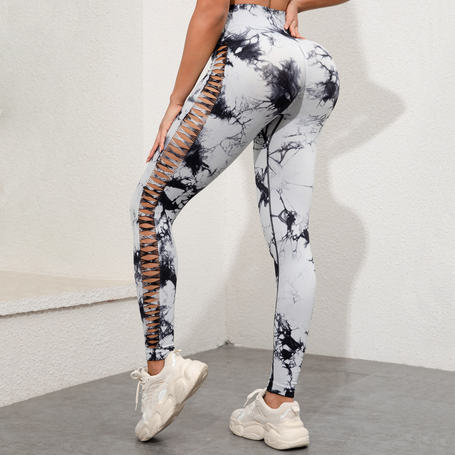 欧美跨境扎染打底裤镂空提臀运动瑜伽健身修身长裤骑行镂空瑜伽裤