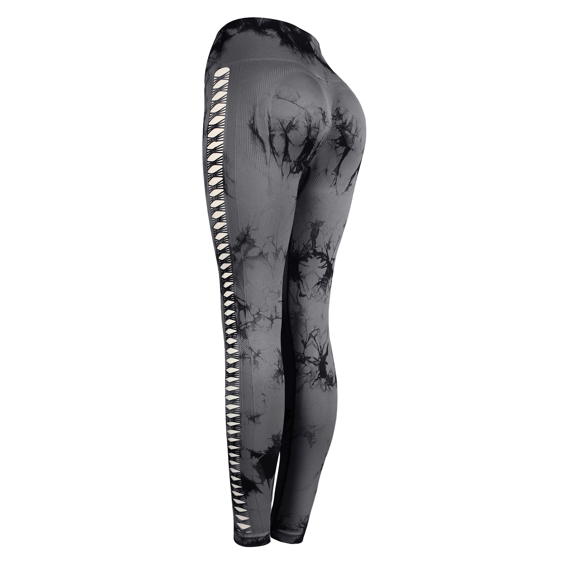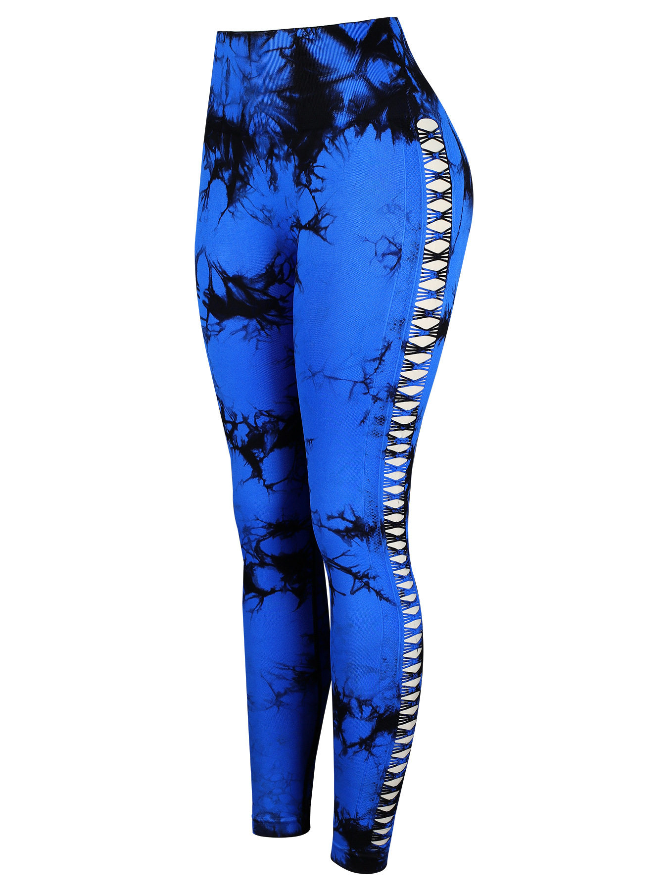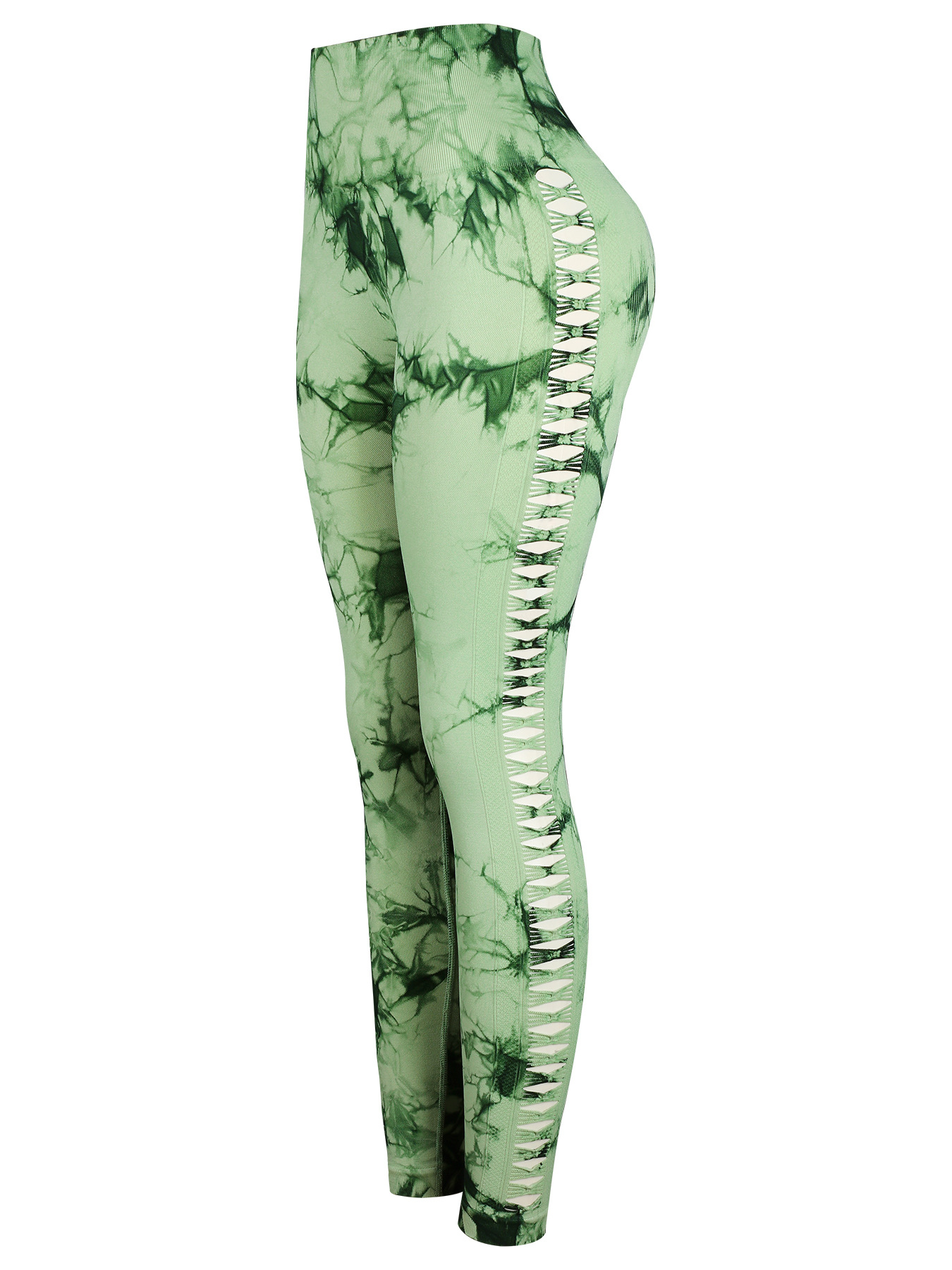 欧美跨境扎染打底裤镂空提臀运动瑜伽健身修身长裤骑行镂空瑜伽裤