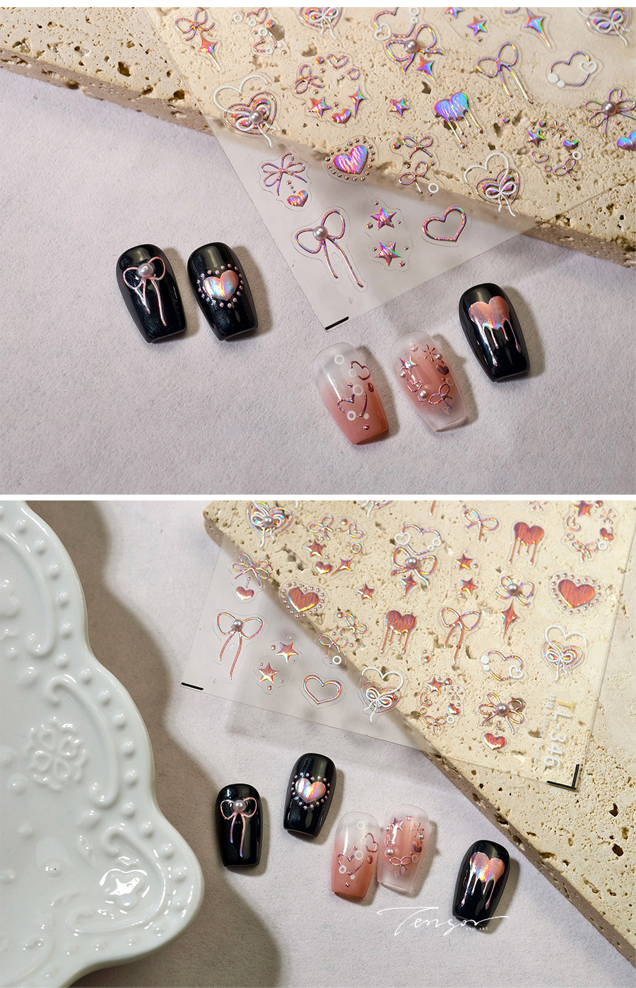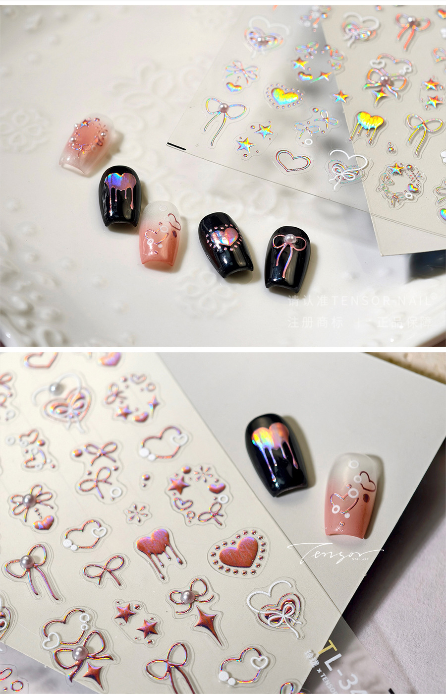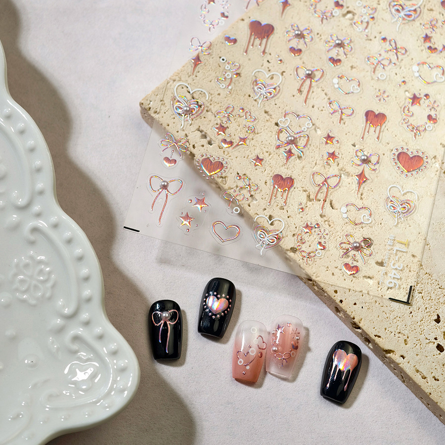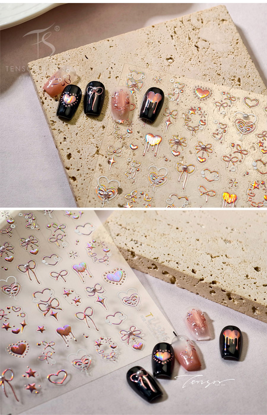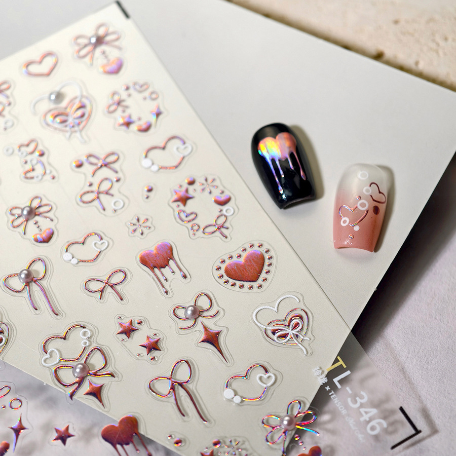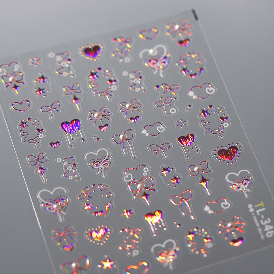 烫银款高级爱心贴纸TL346粉红素面玲珑系列美甲贴纸