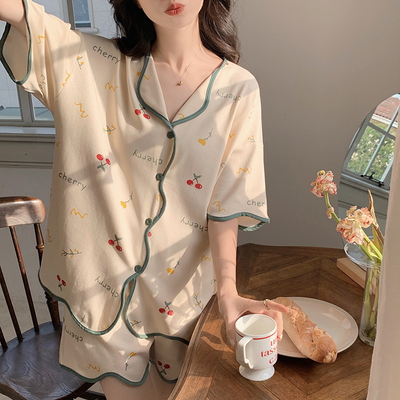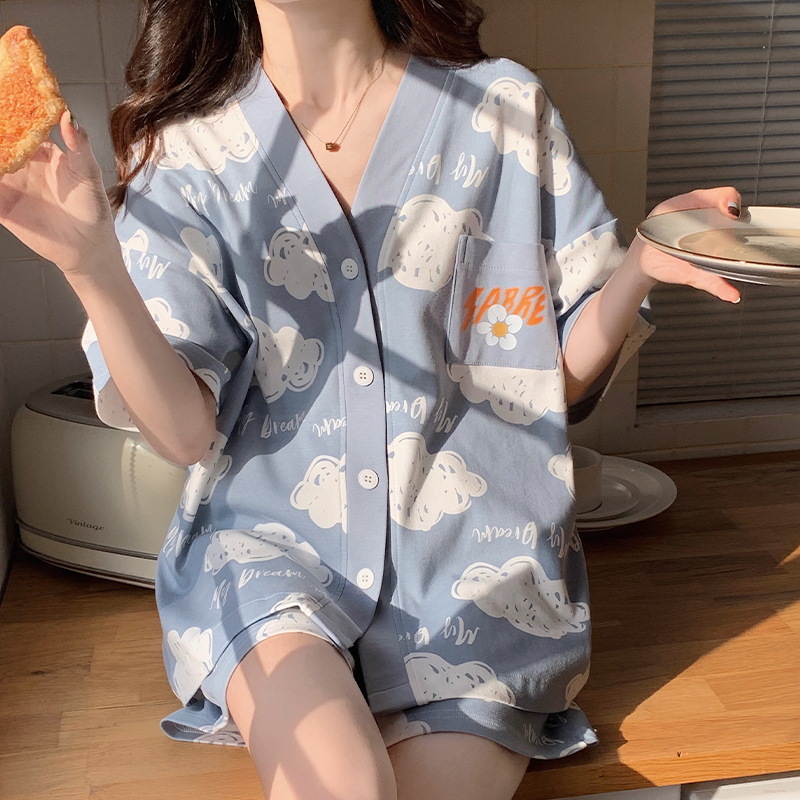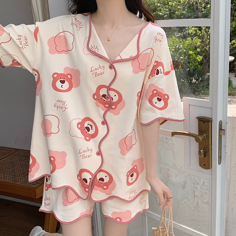 睡衣女夏季短袖短裤薄款韩版ins风甜美卡通家居服套装可外穿批发