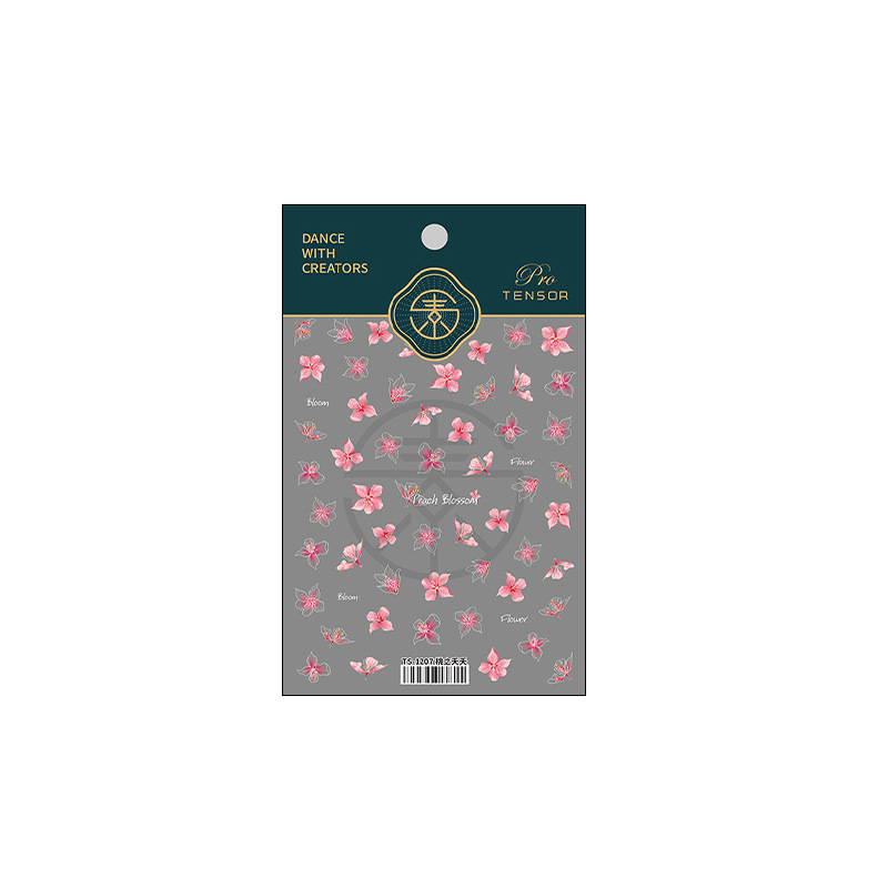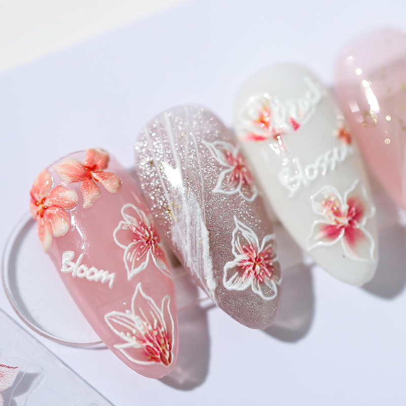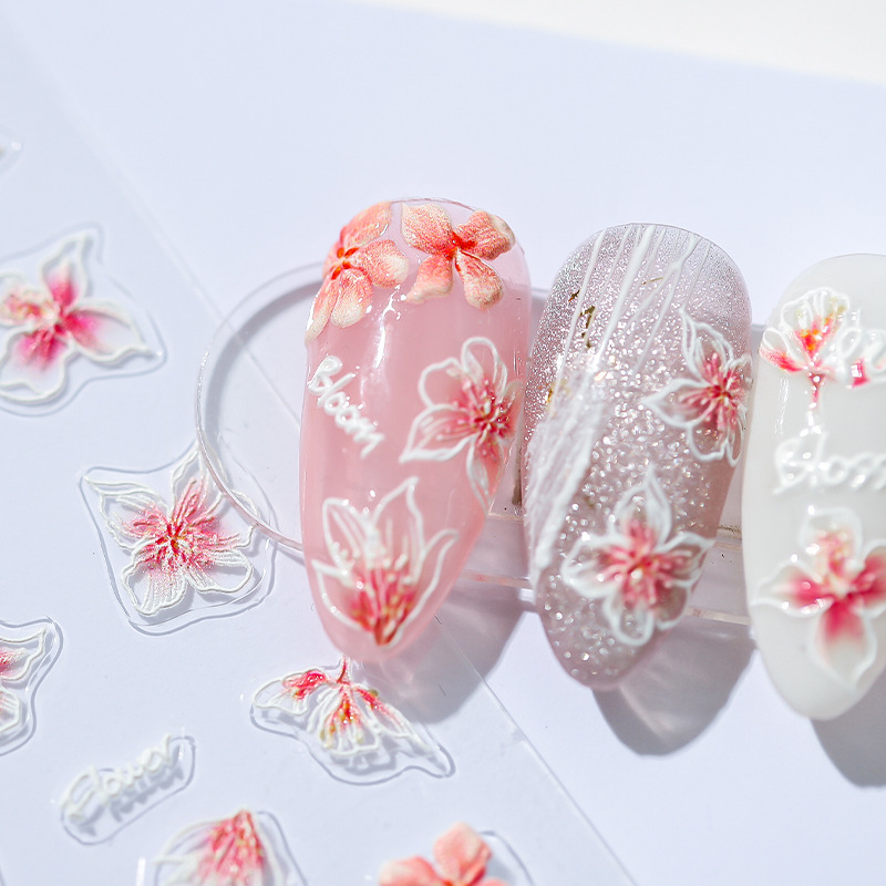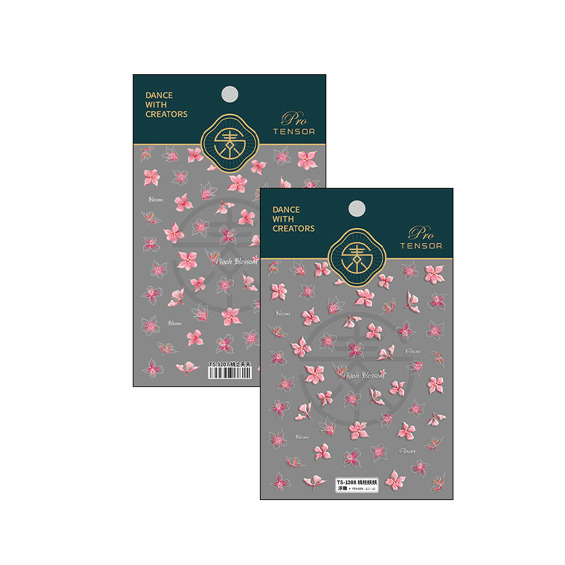 立体5D美甲贴纸薄透背胶指甲贴饰品桃枝妖妖贴纸