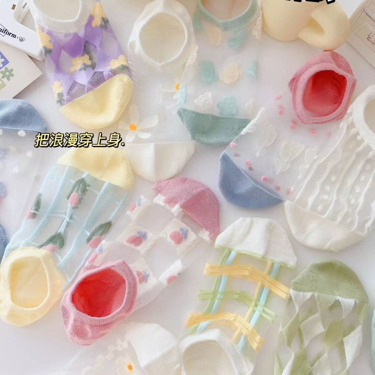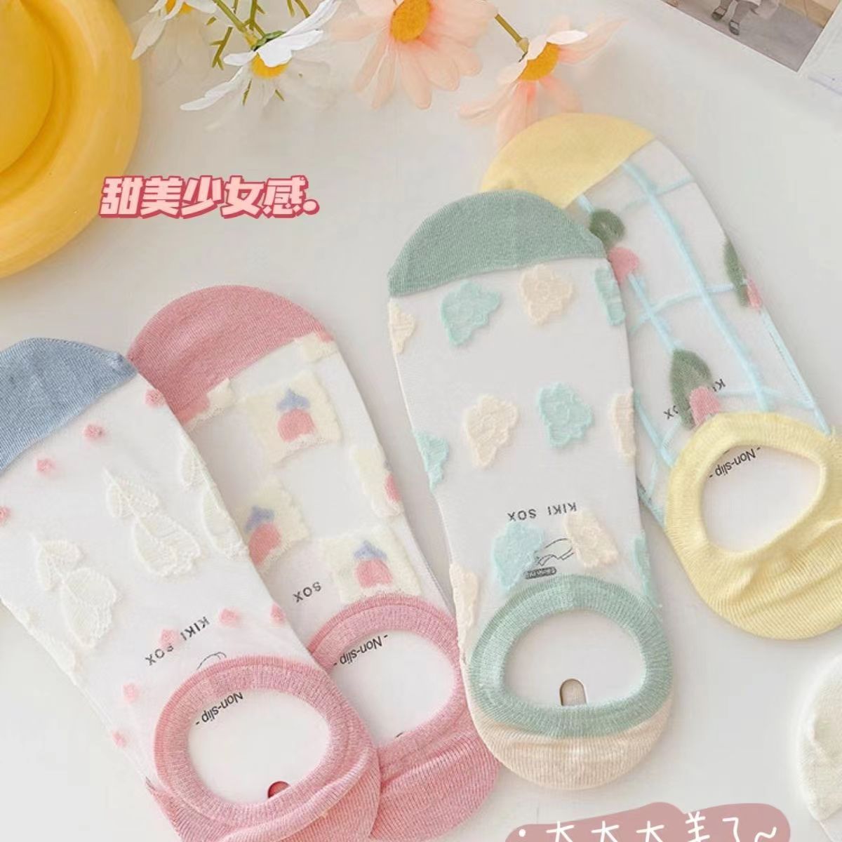 可爱玻璃丝袜子女短袜夏季薄款ins潮防滑不掉跟夏款隐形船袜