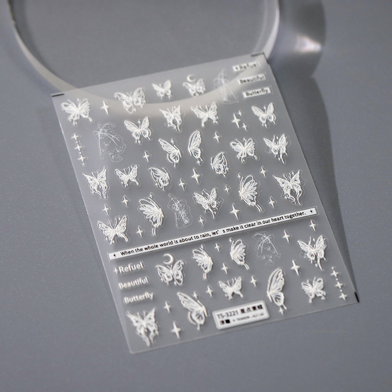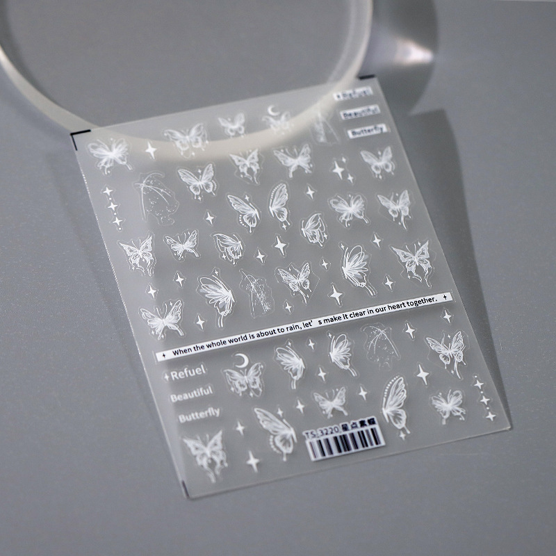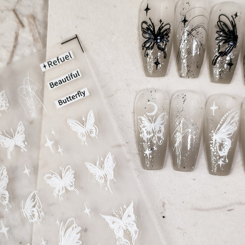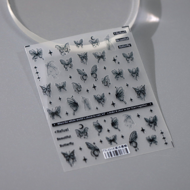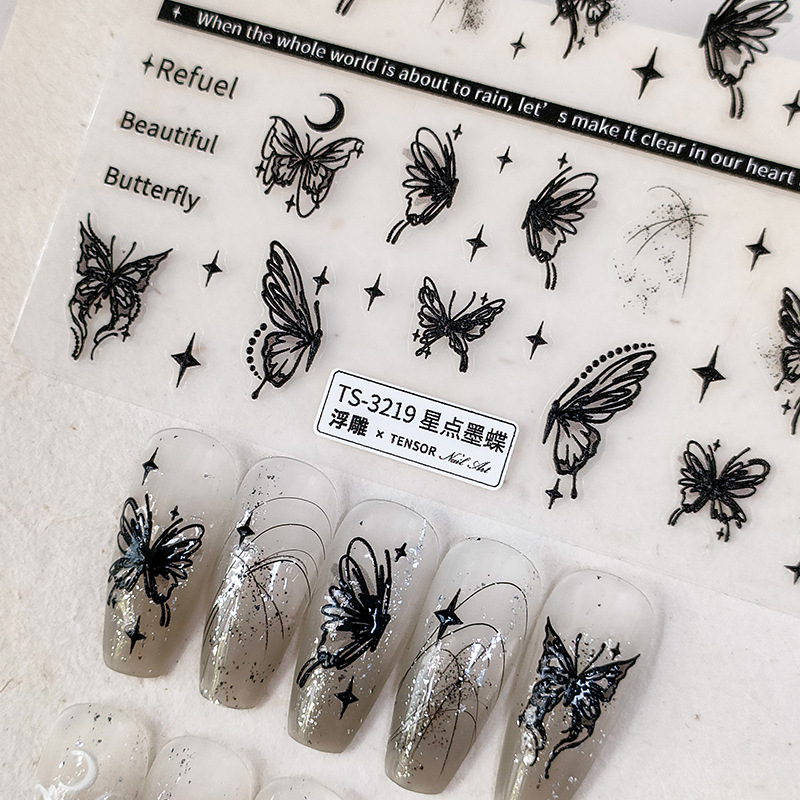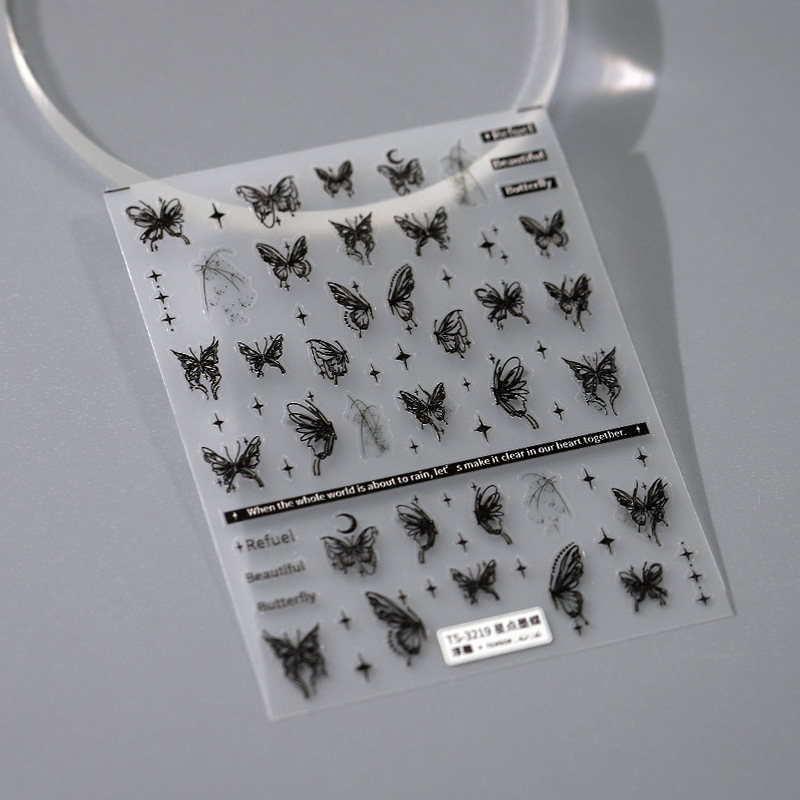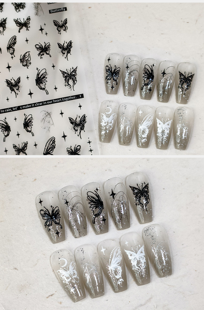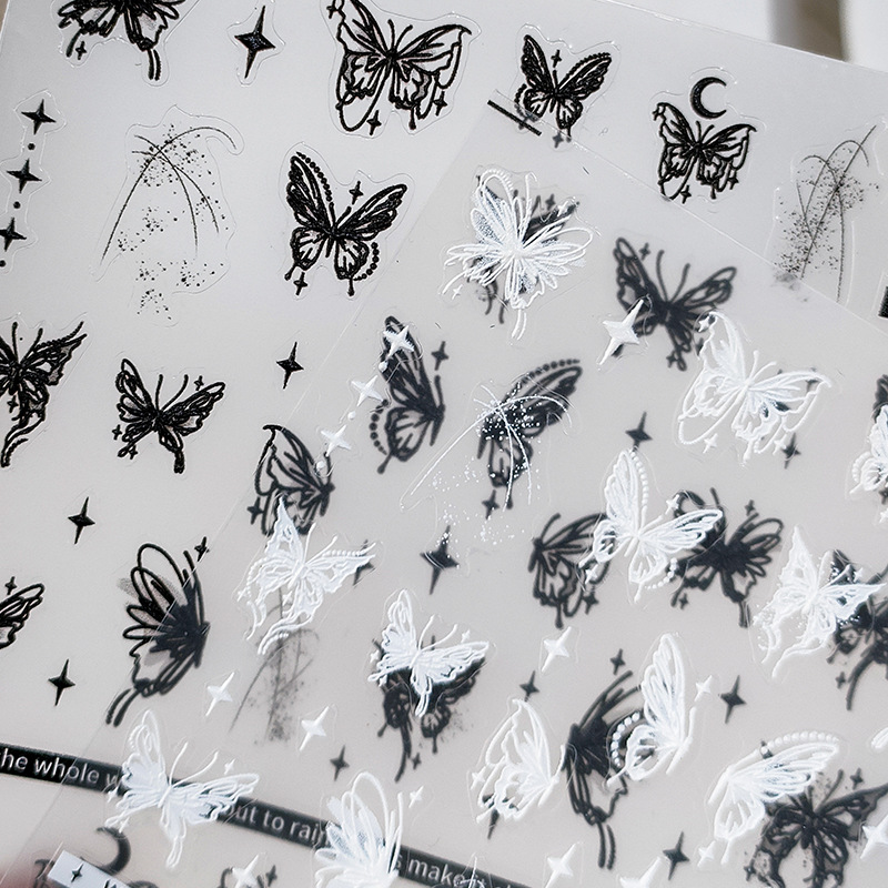 日系薄韧指甲贴pro磨砂薄透背胶美甲贴星点墨蝶美甲贴纸