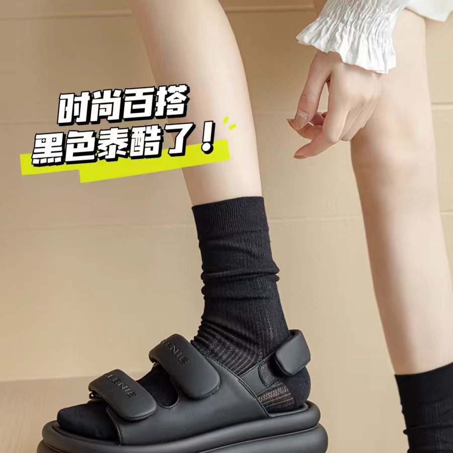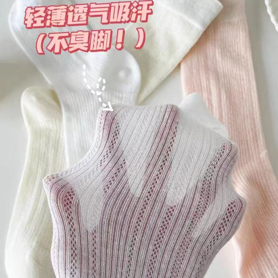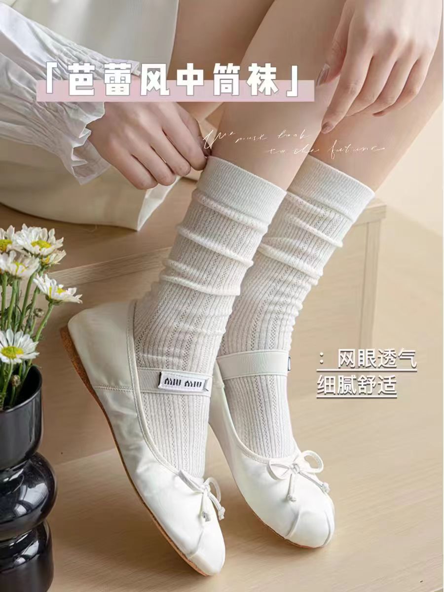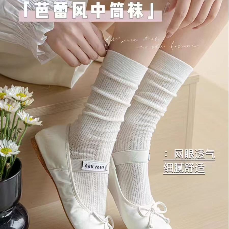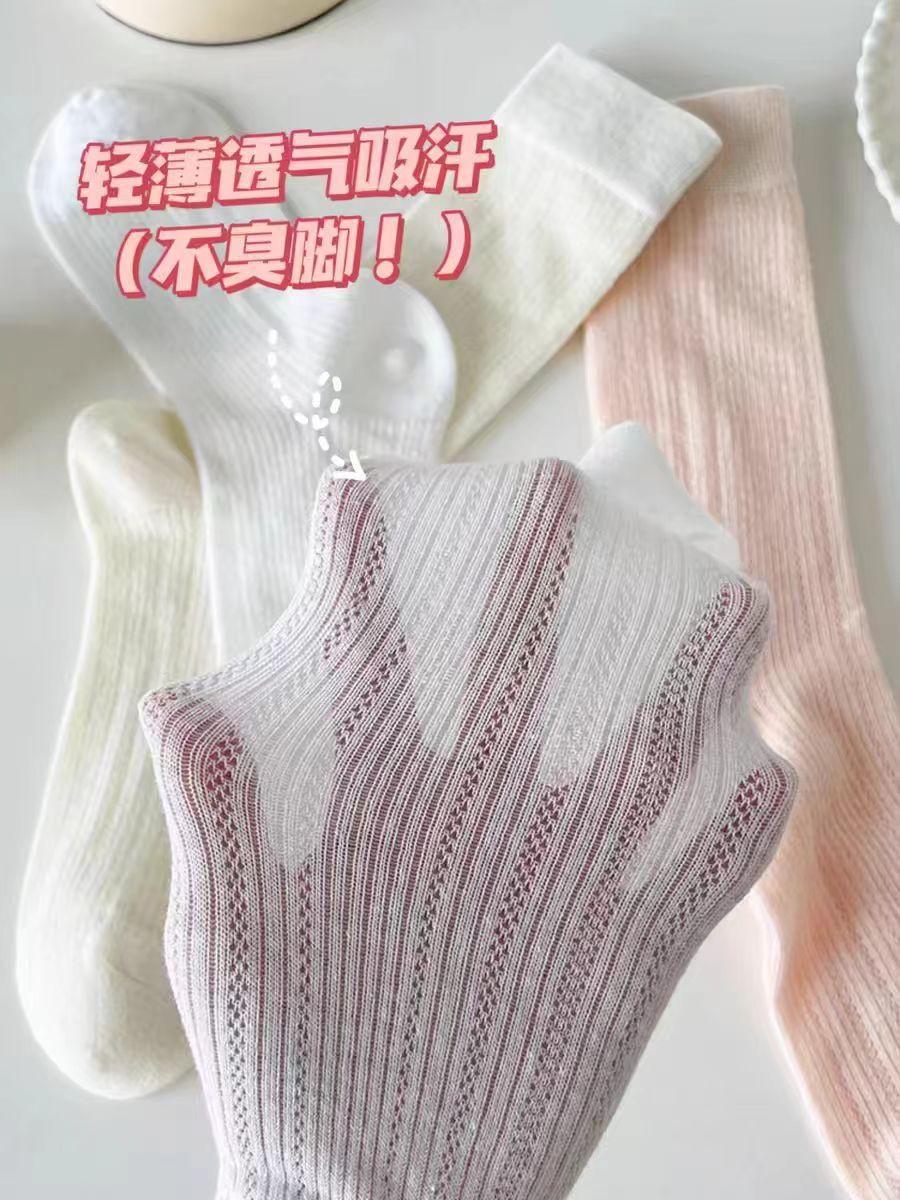 芭蕾风白色袜子夏季薄款女中筒袜镂空网眼透气春秋款堆堆长袜