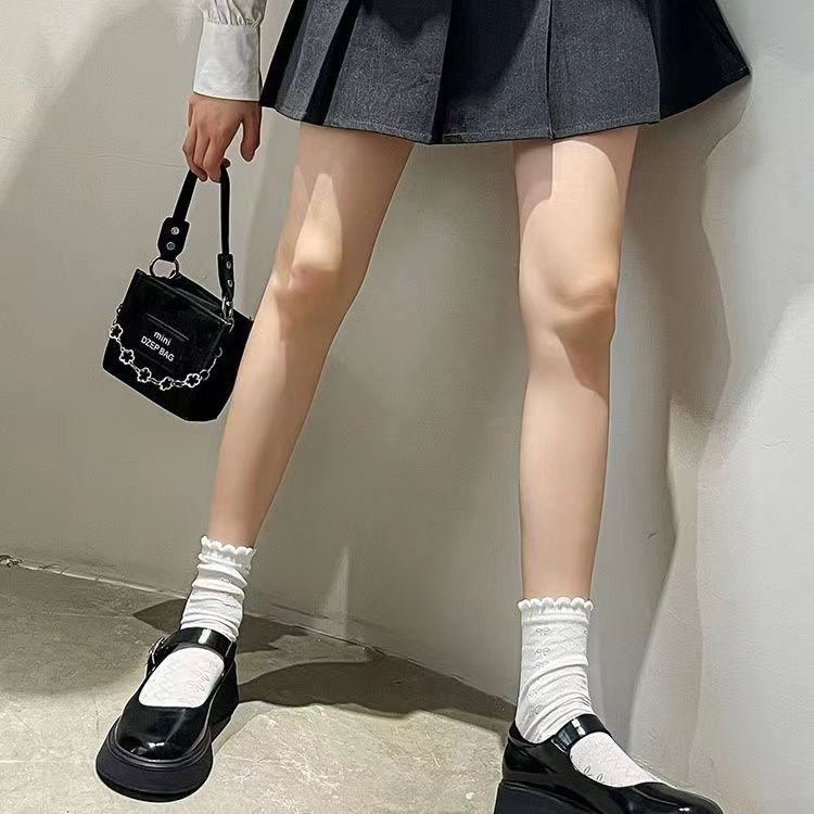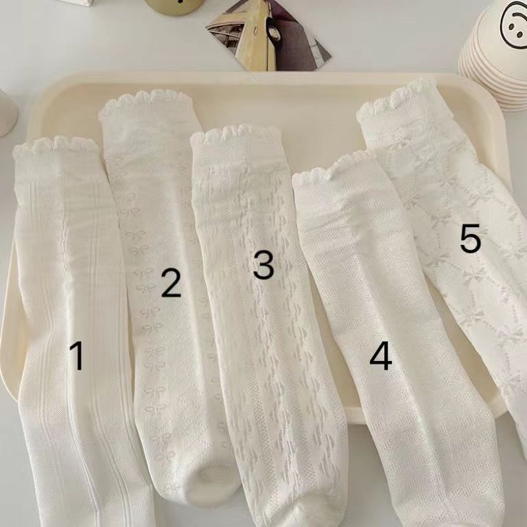 镂空网眼袜子女中筒袜夏季薄款花边白色透气长筒堆堆袜