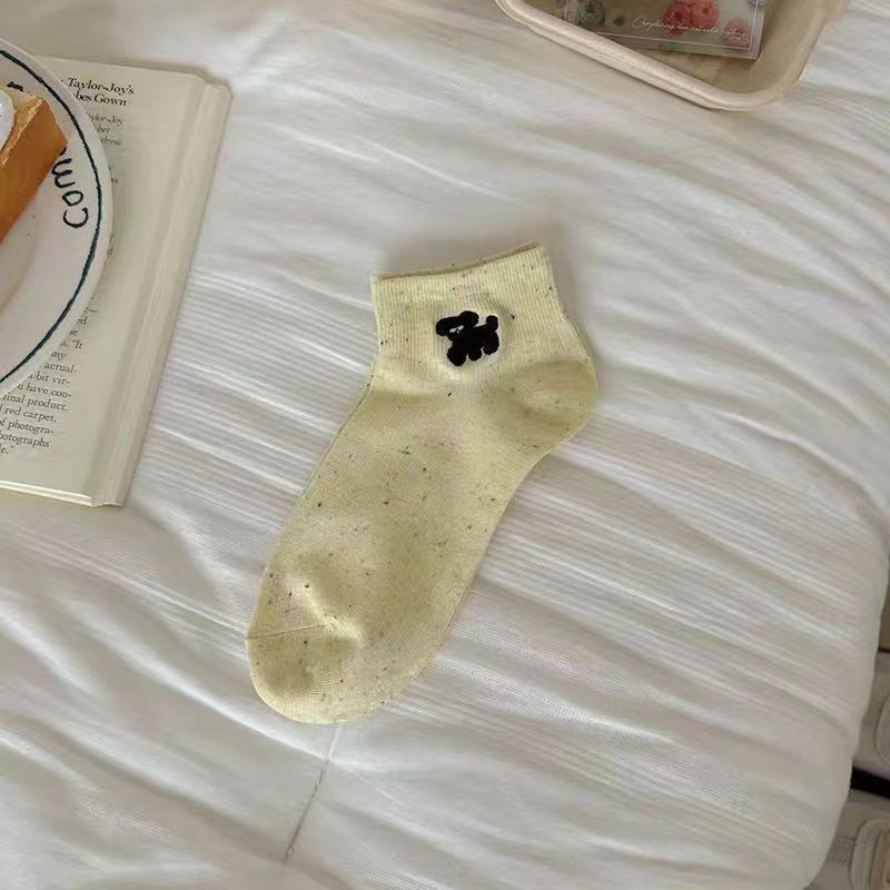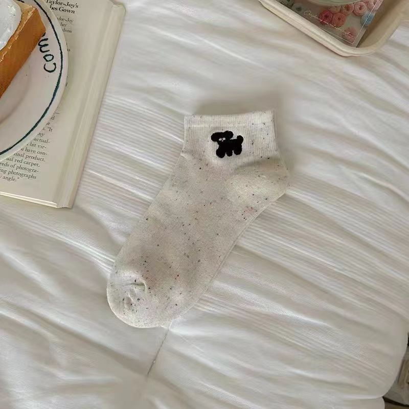 点子纱小狗袜子女中筒春秋款韩国日系可爱夏季短袜