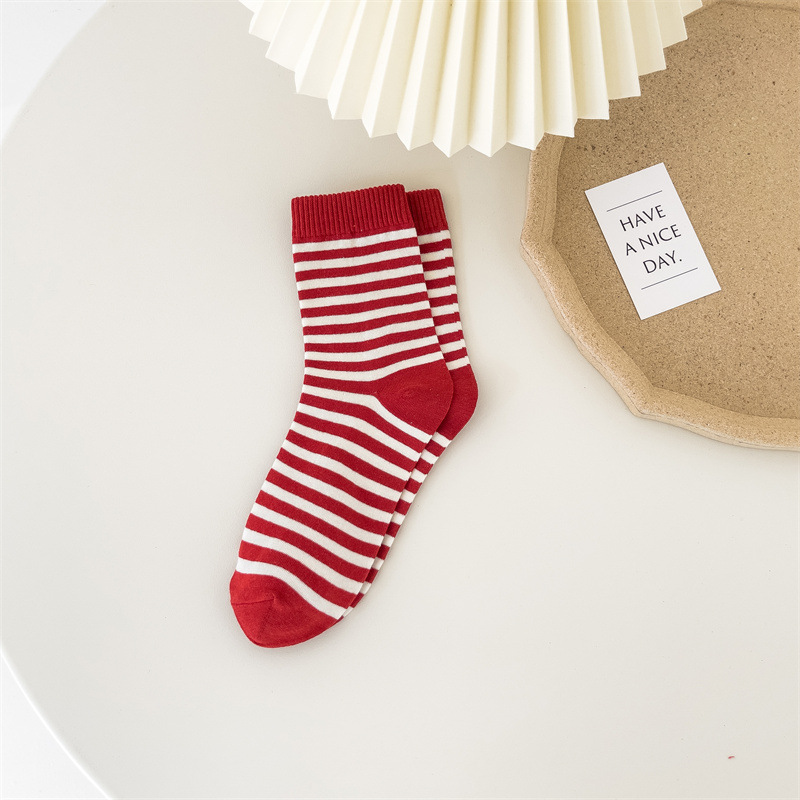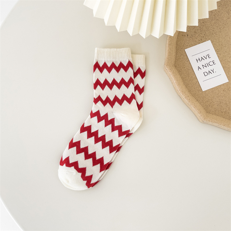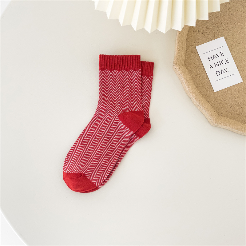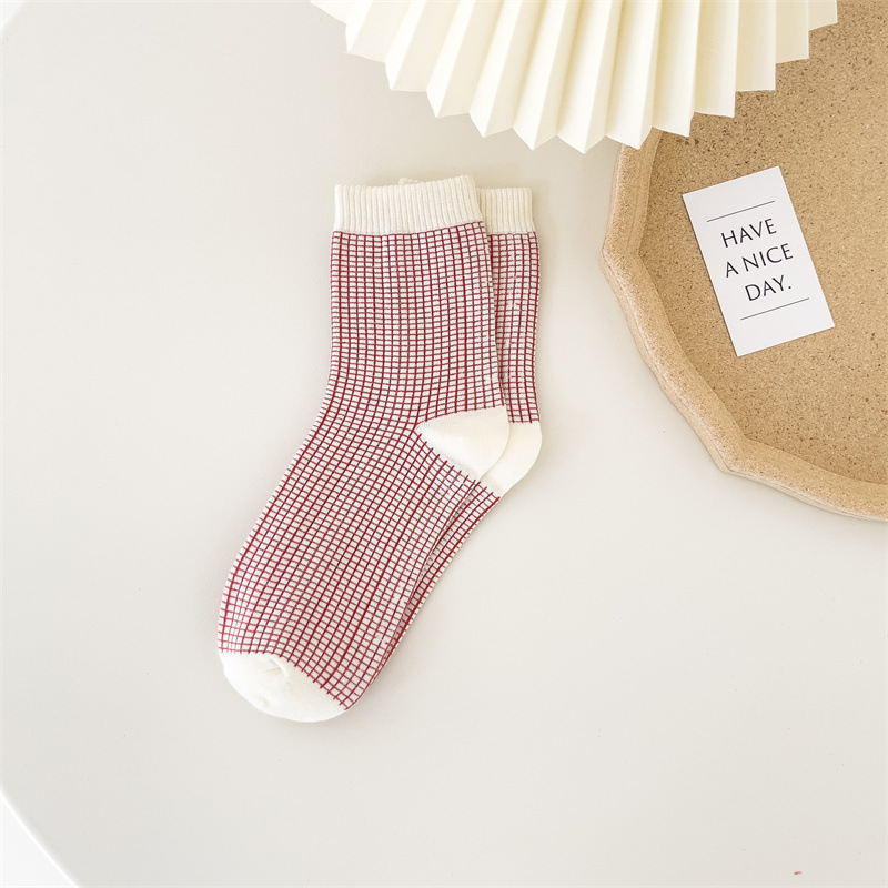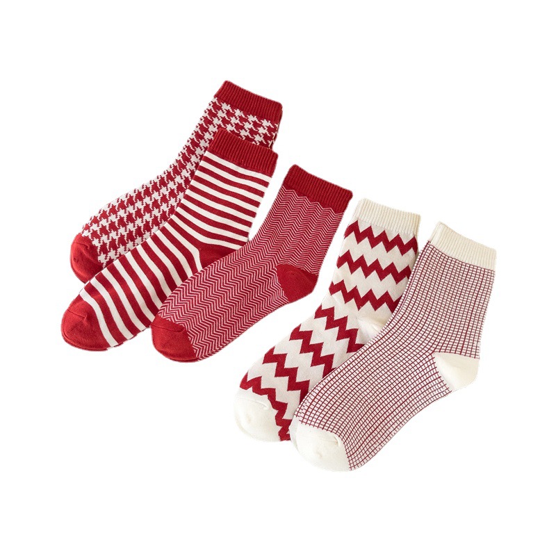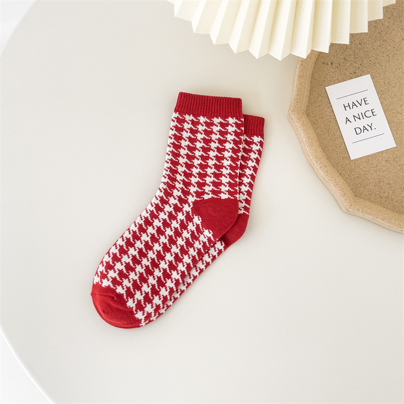 新年袜大红袜子喜庆节日袜本命年格子棉袜ins潮袜喜庆中筒袜