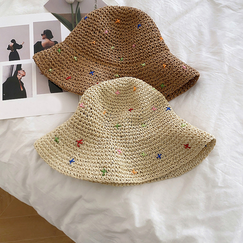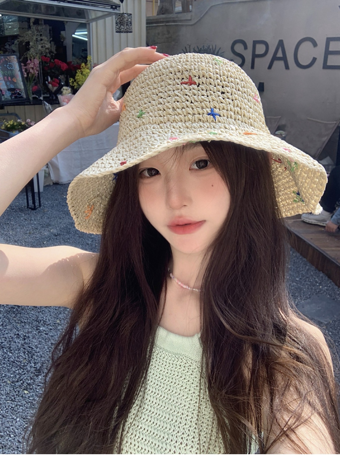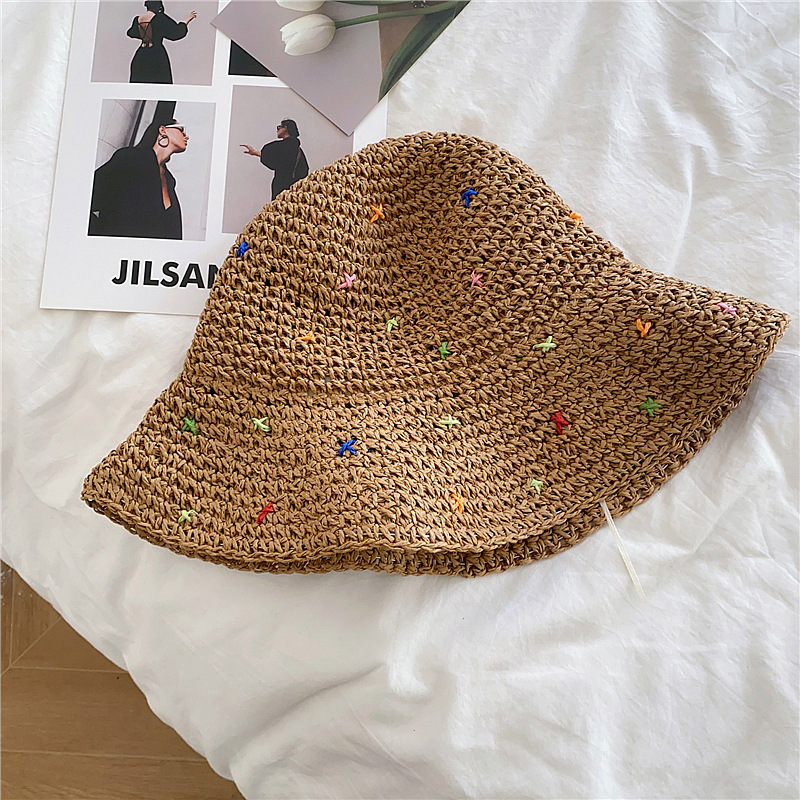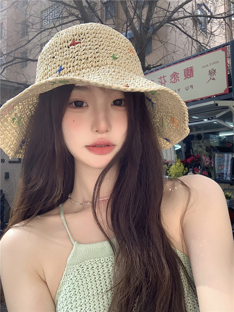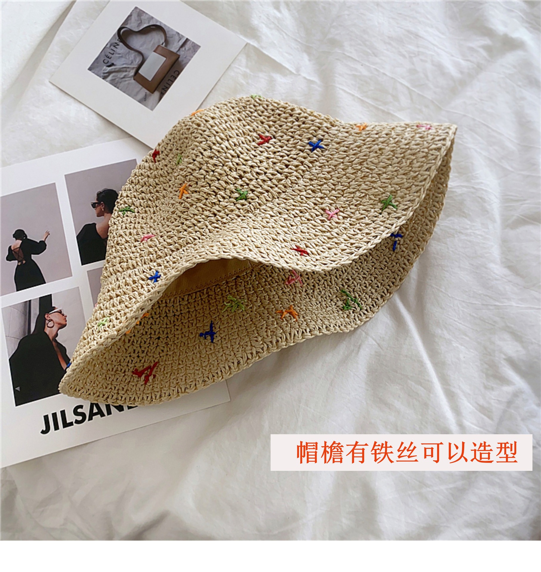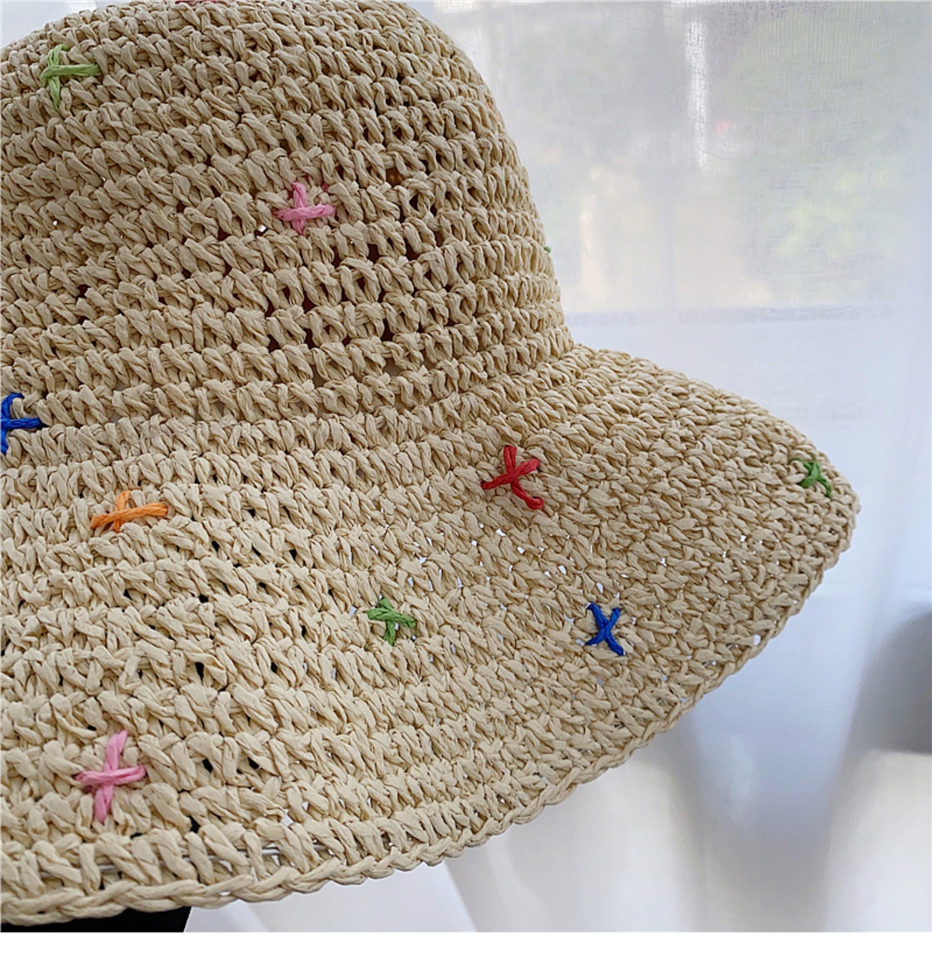 彩色甜美编织草帽女夏季海边沙滩镂空钩针防晒帽度假大帽檐遮阳帽