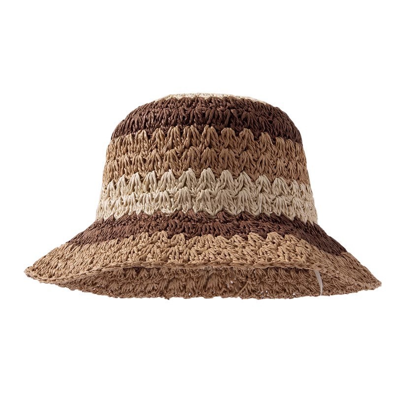 日系ins彩虹草编水桶帽女夏季出游防晒遮阳沙滩大檐显脸小渔夫帽