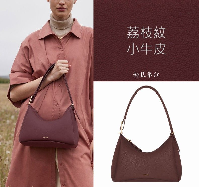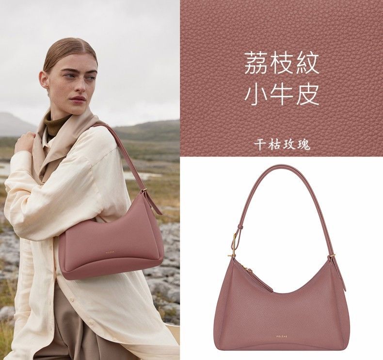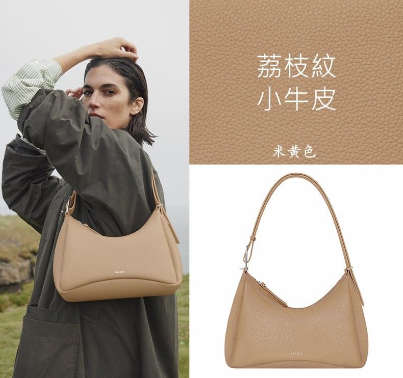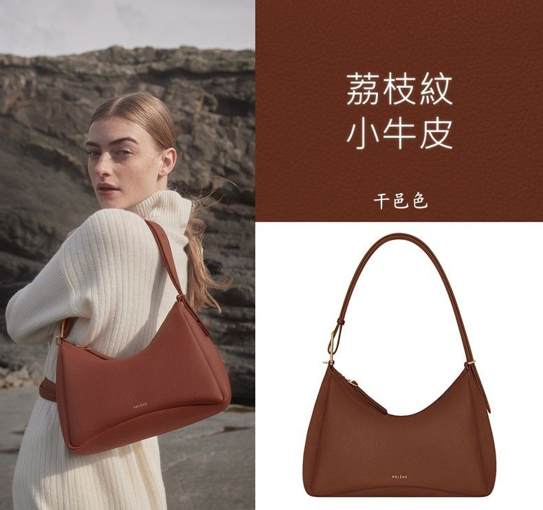 跨境爆款Pol波灵恩单肩斜挎Umi - 荔枝纹高品质原版真皮手提女包