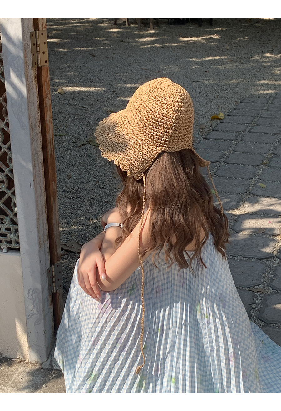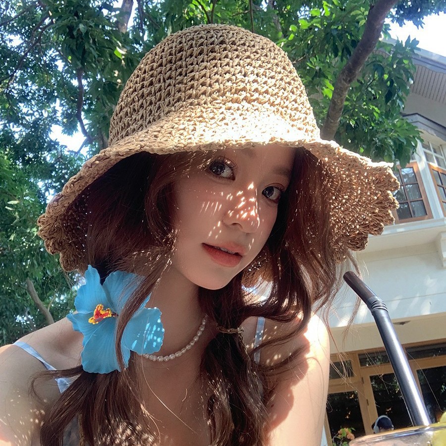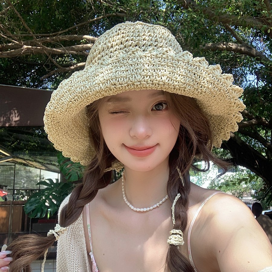 手工编织波浪边大沿草帽女2025春新款海边出游小清新百搭遮阳帽子