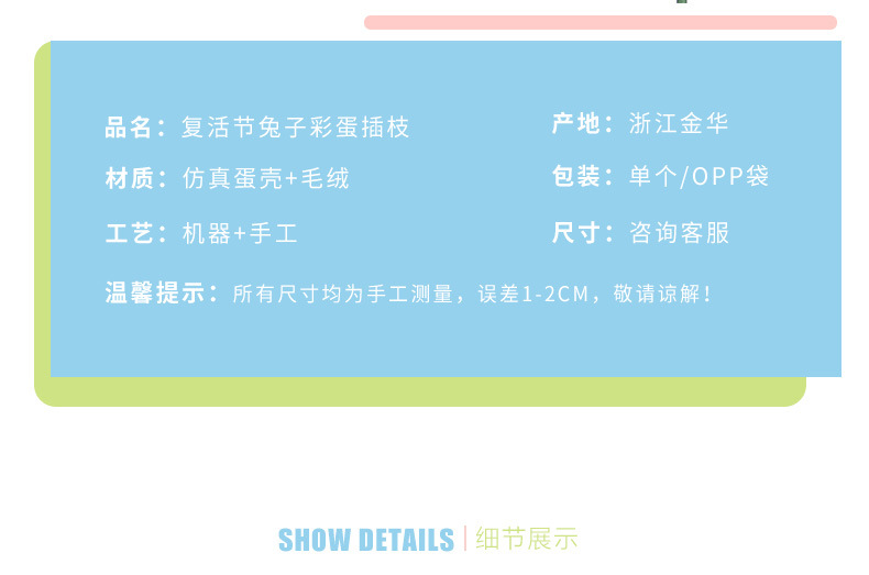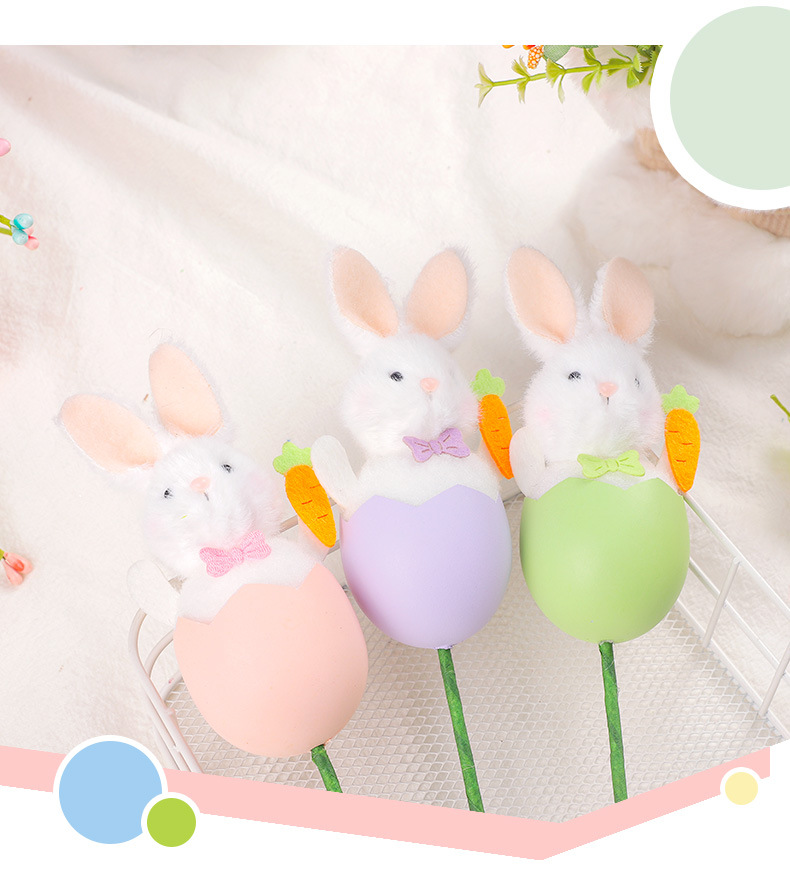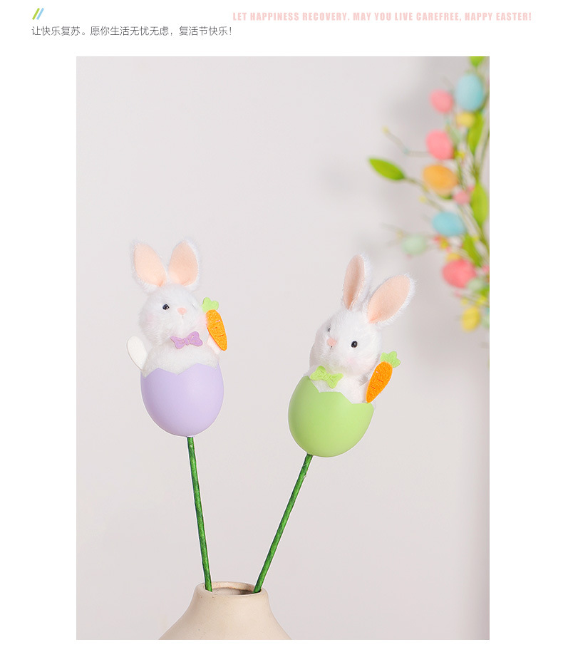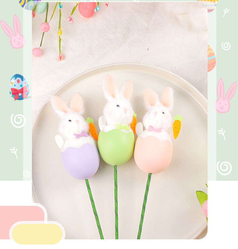 跨境 复活节装饰品 ins可爱兔子复活蛋插枝 DIY花束插花装饰配件