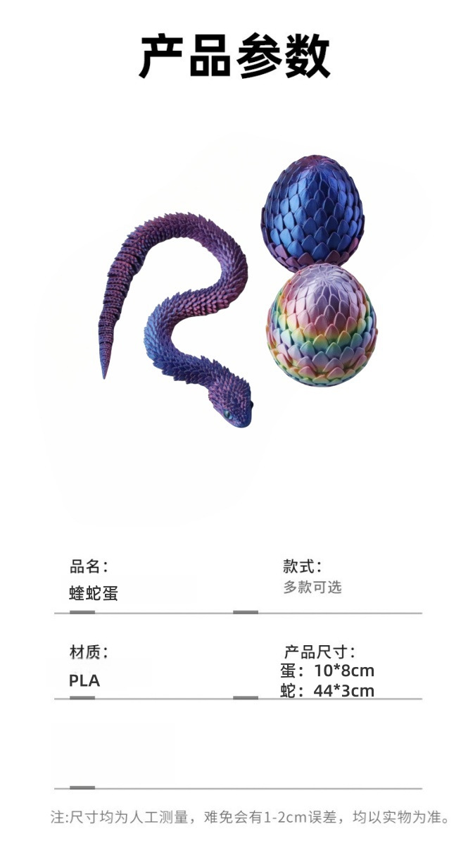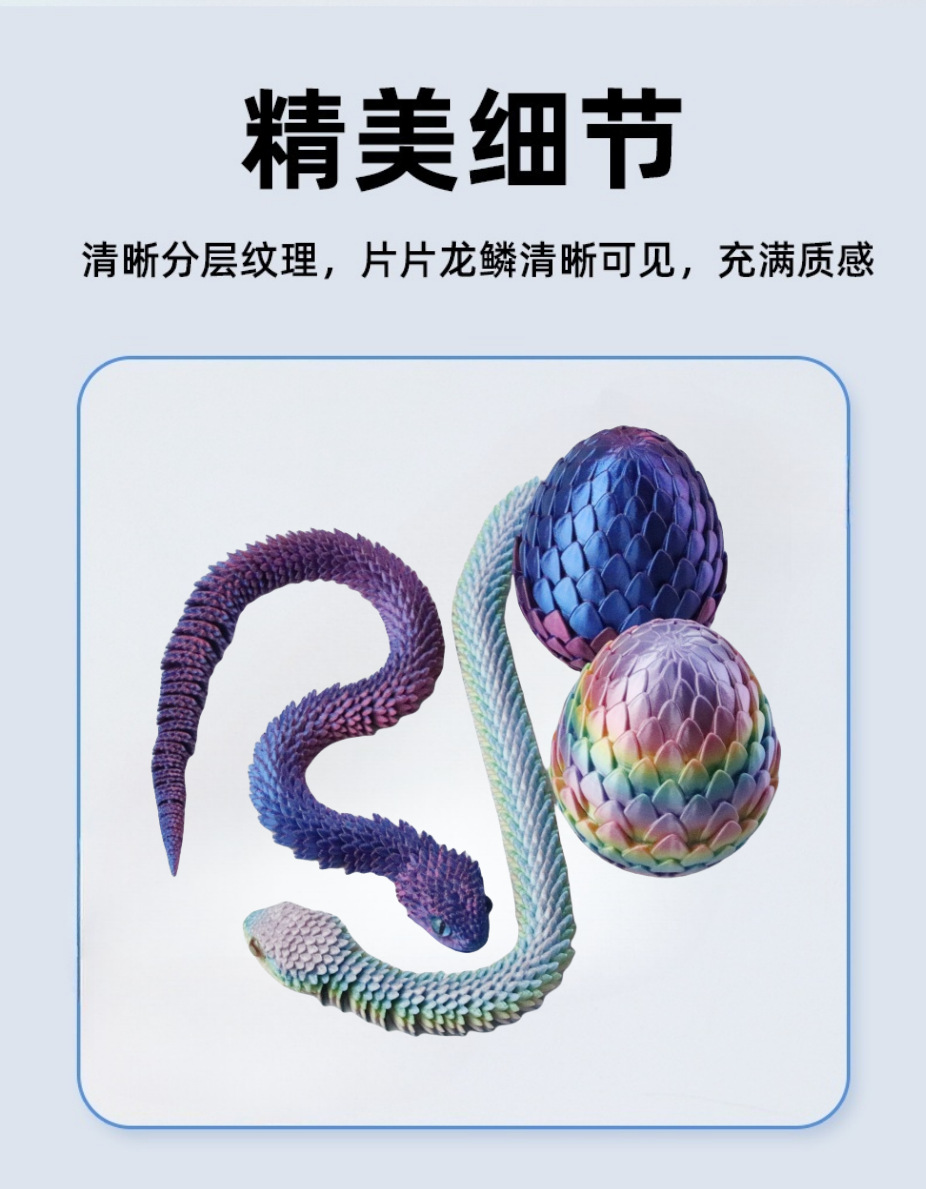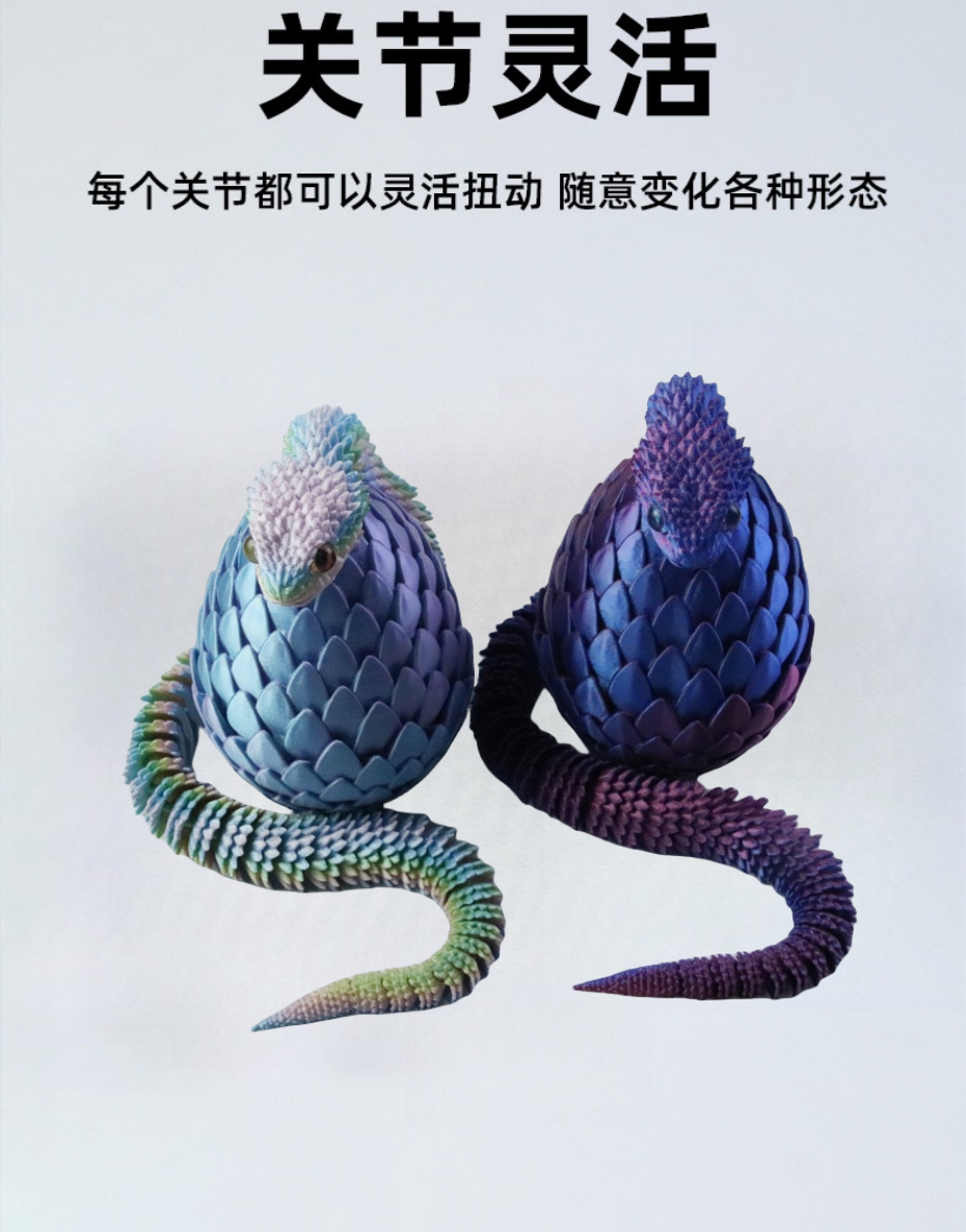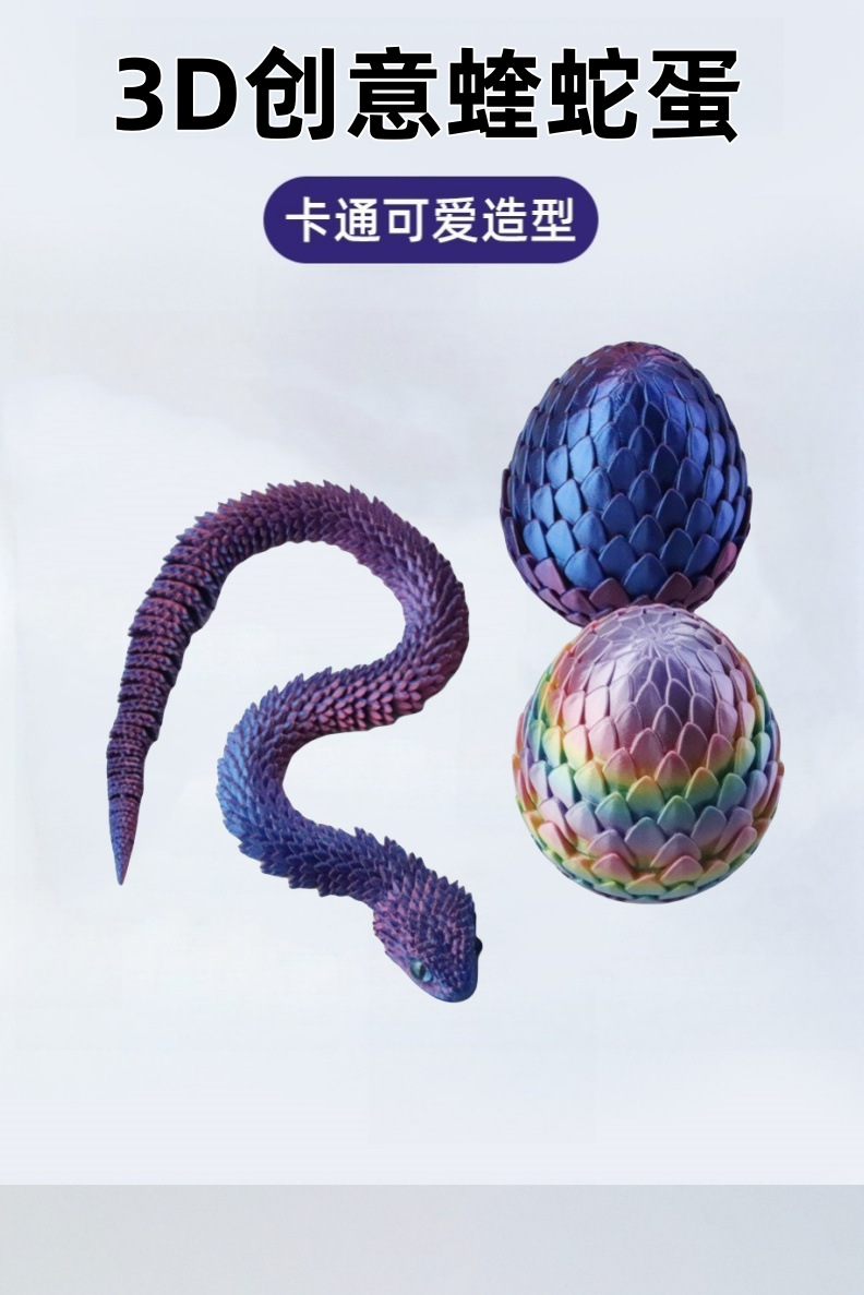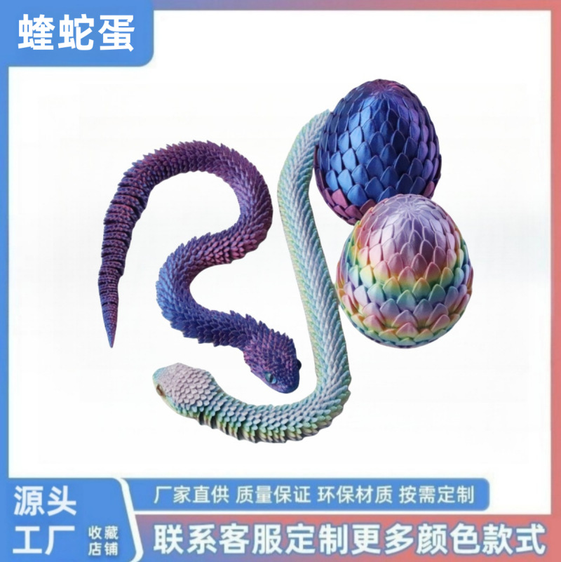 3d打印蛇全身关节可动立体蝰蛇玩具模型创意装饰摆件龙蛋儿童礼物