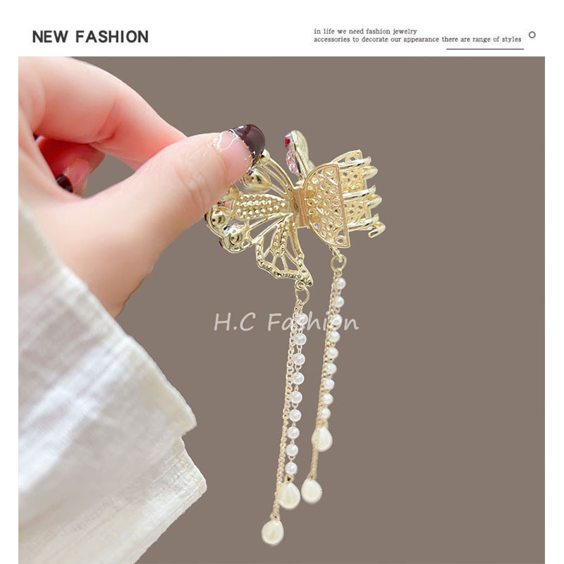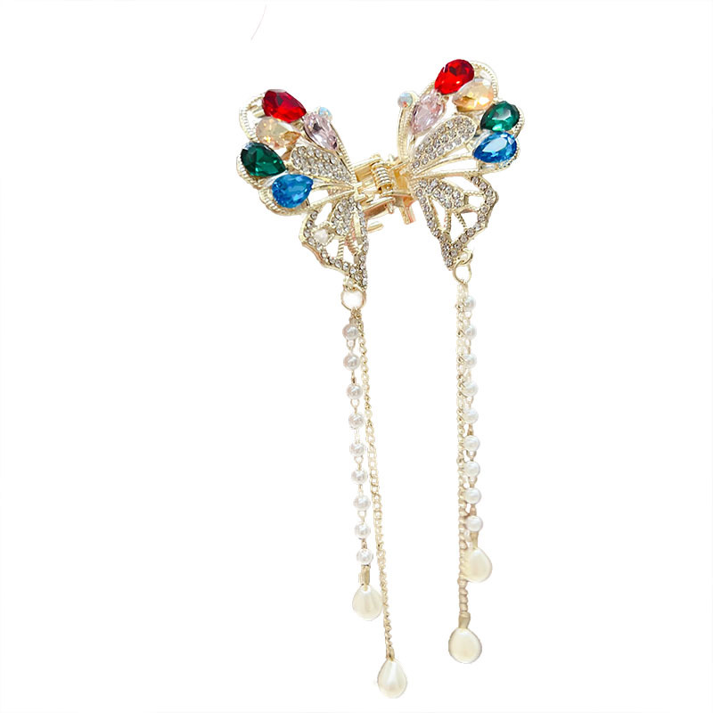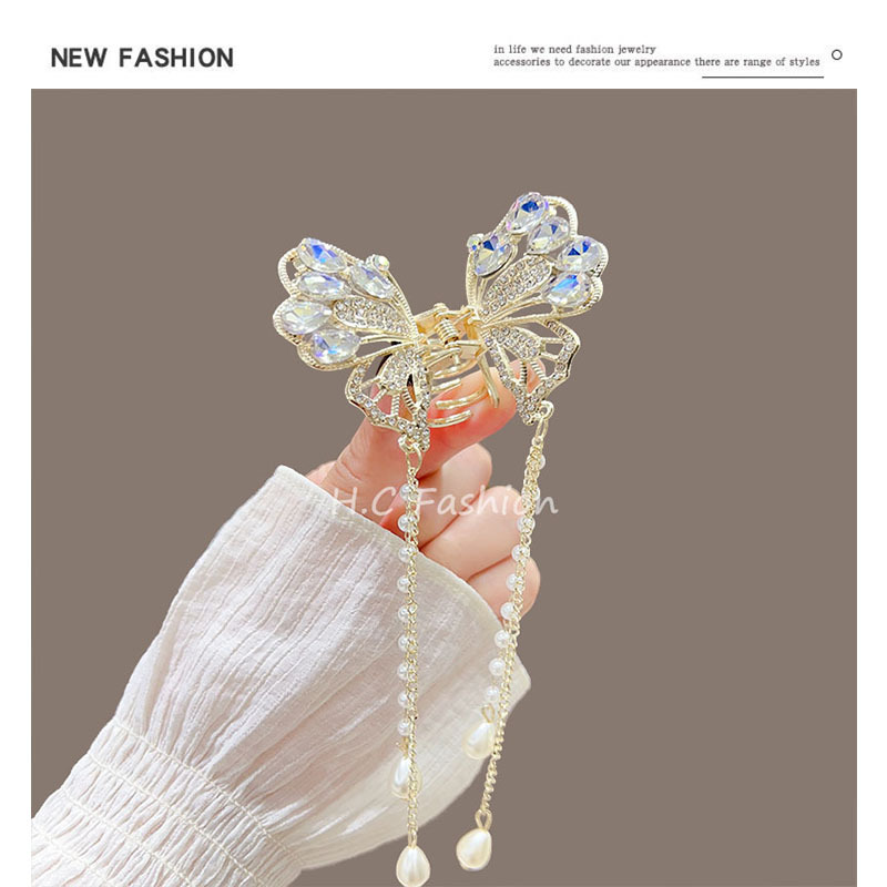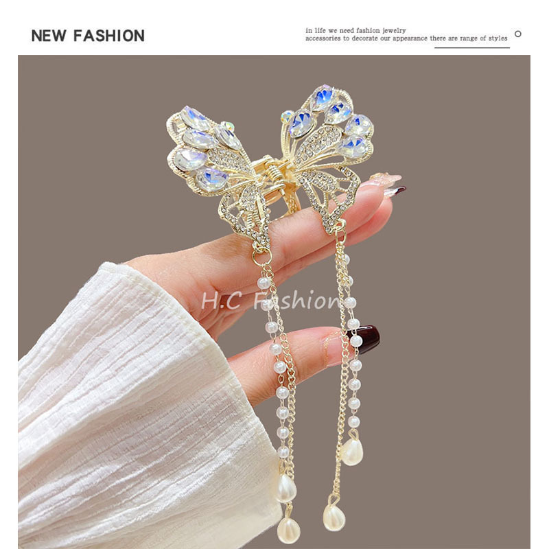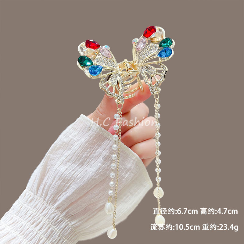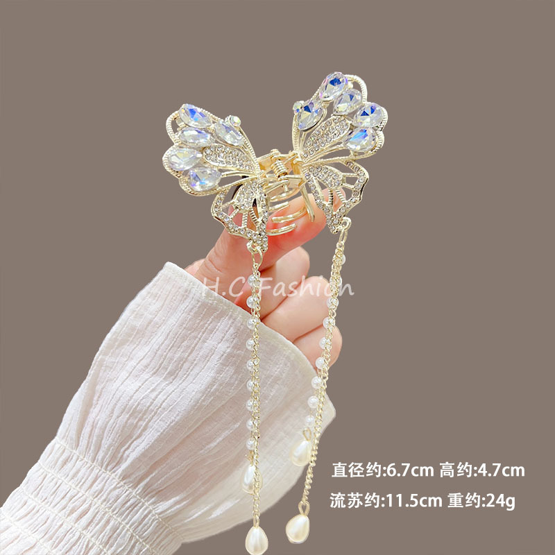 蝴蝶珍珠流苏抓夹新款半扎盘发鲨鱼夹发饰