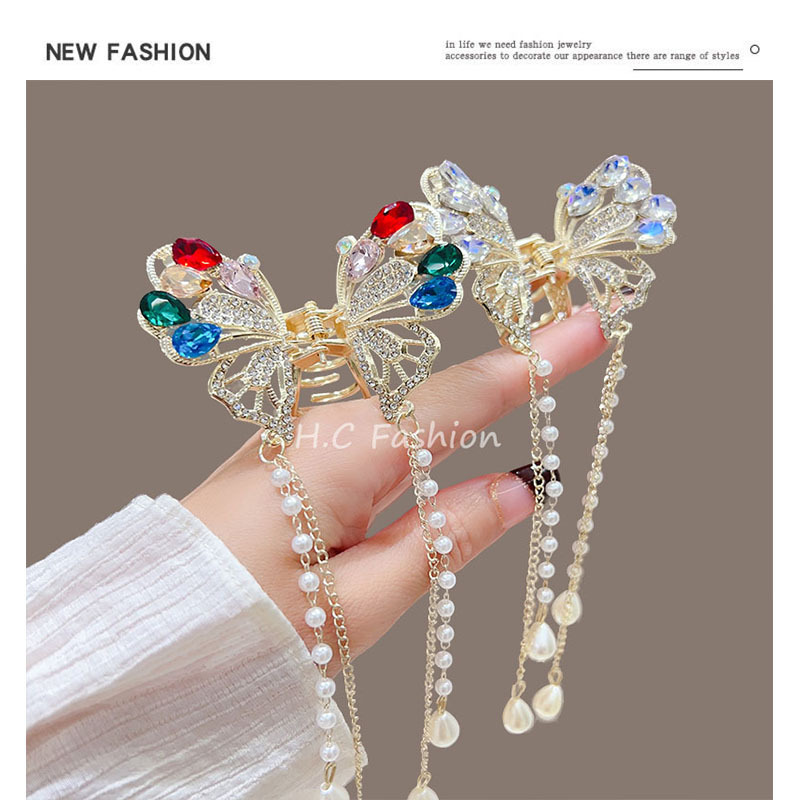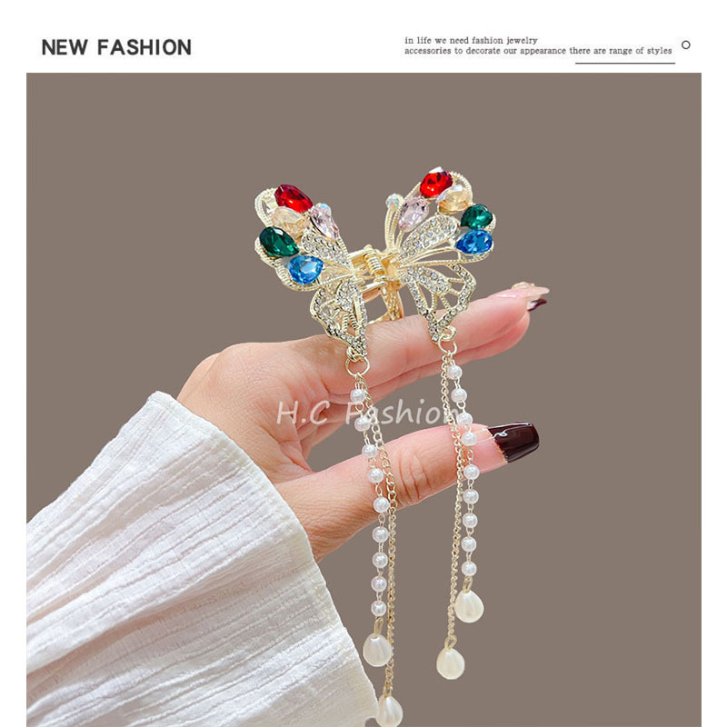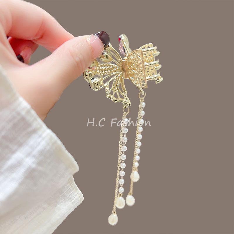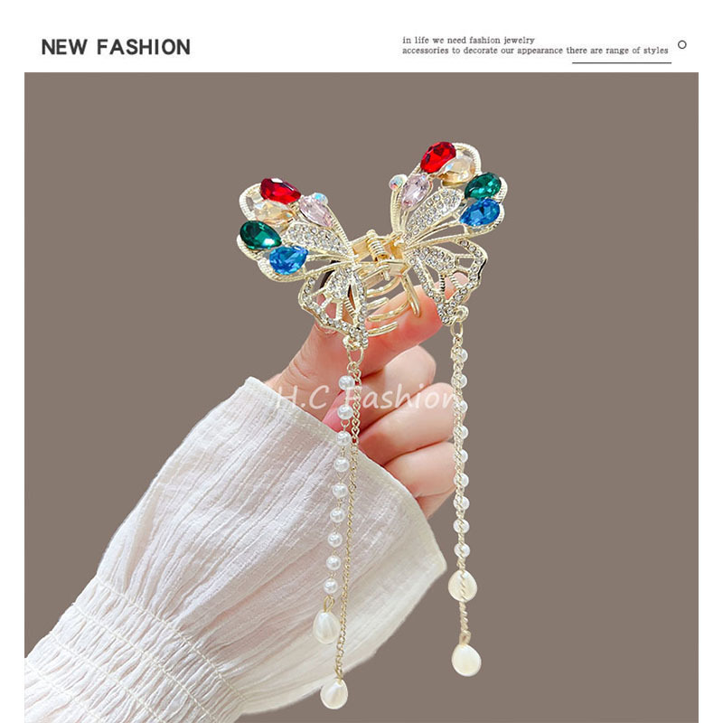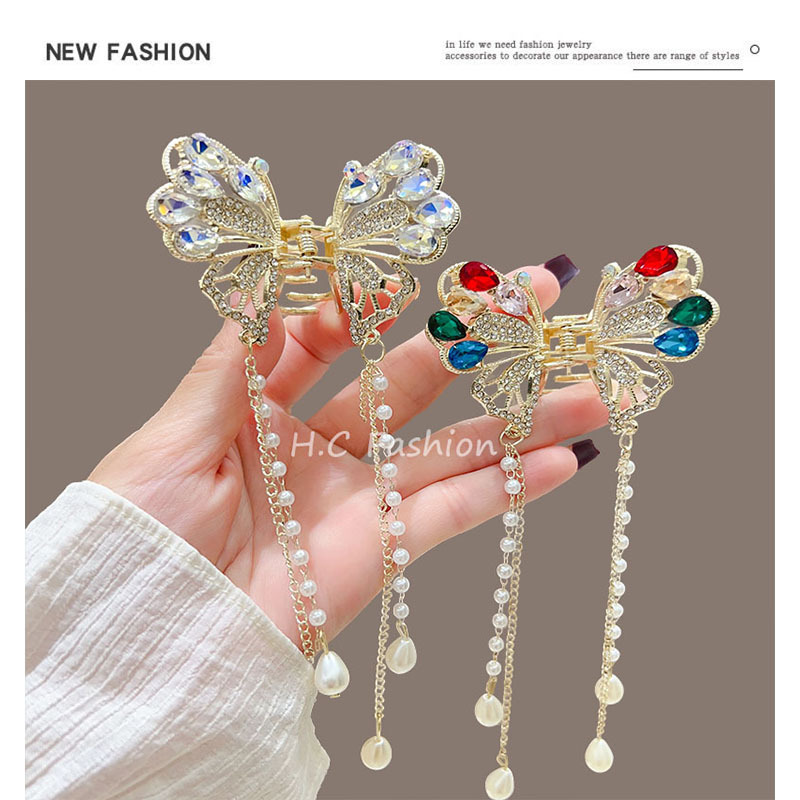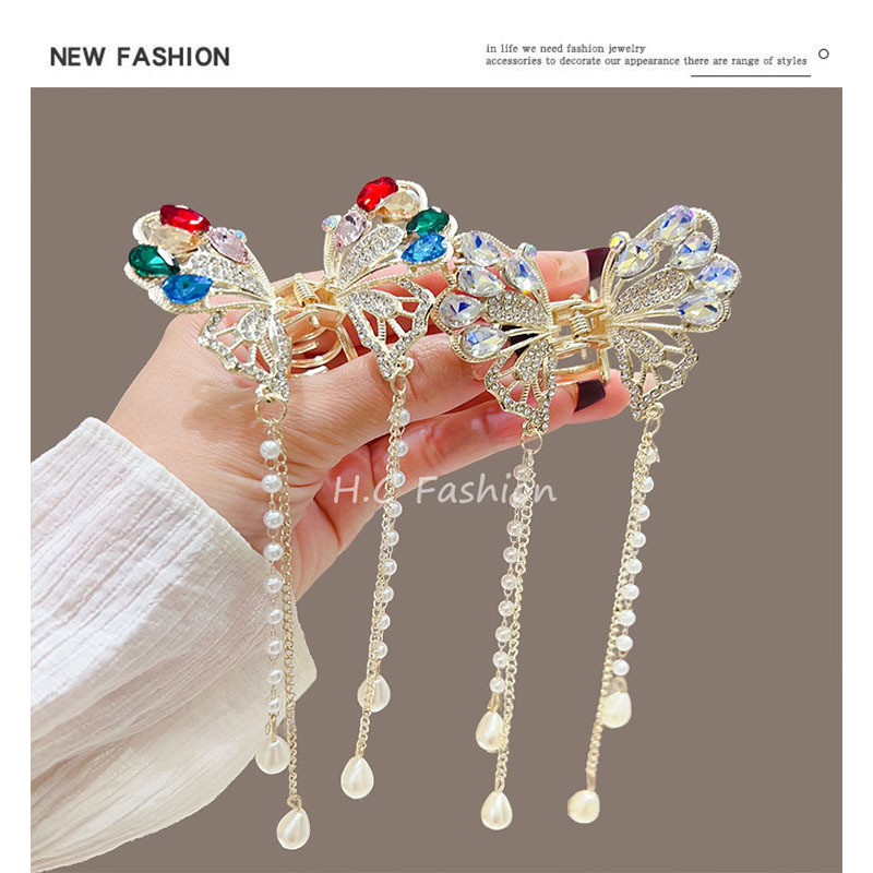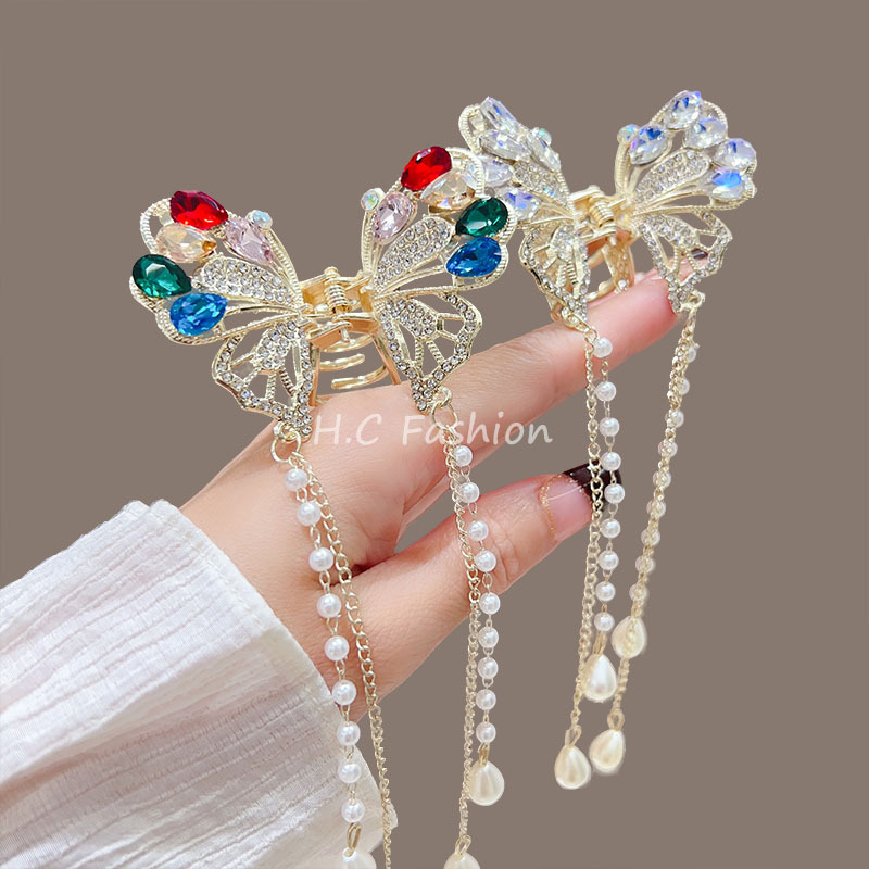 蝴蝶珍珠流苏抓夹新款半扎盘发鲨鱼夹发饰