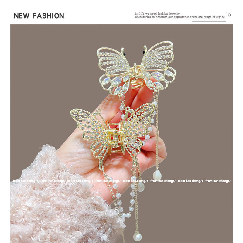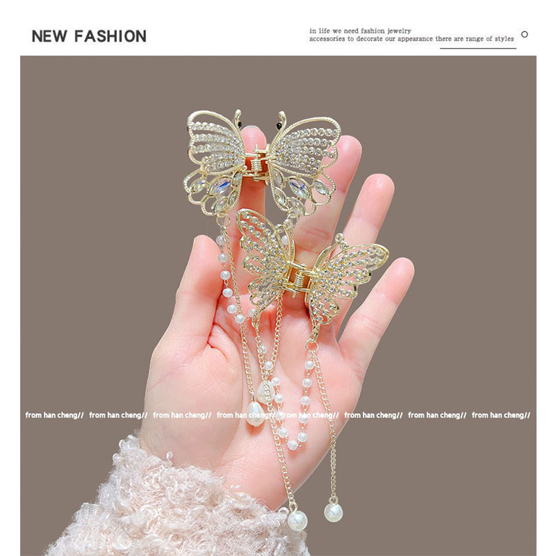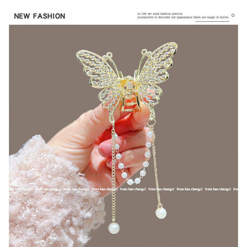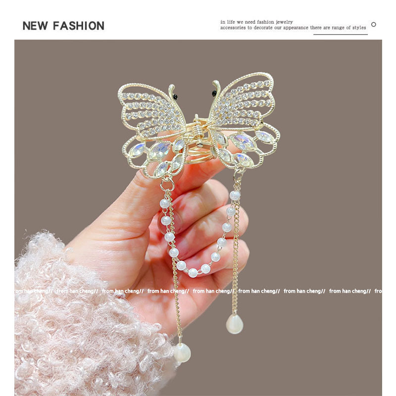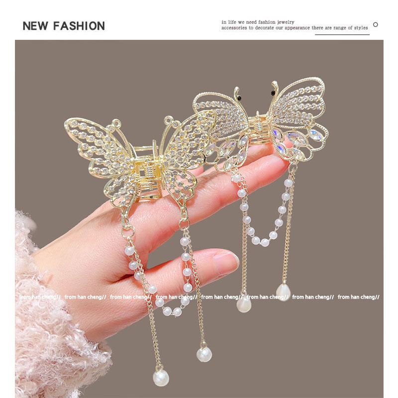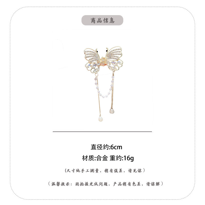 新款水晶蝴蝶珍珠流苏抓夹鲨鱼夹气质高级感半扎发夹头饰品